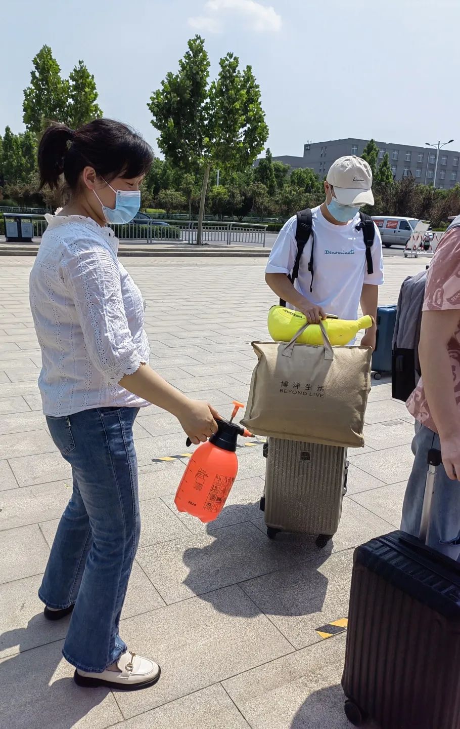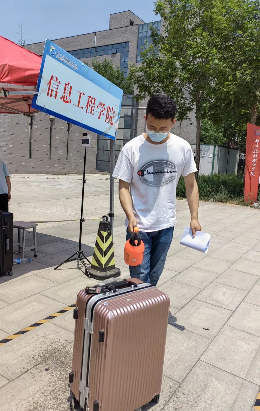班主任对返校学生行李进行消杀