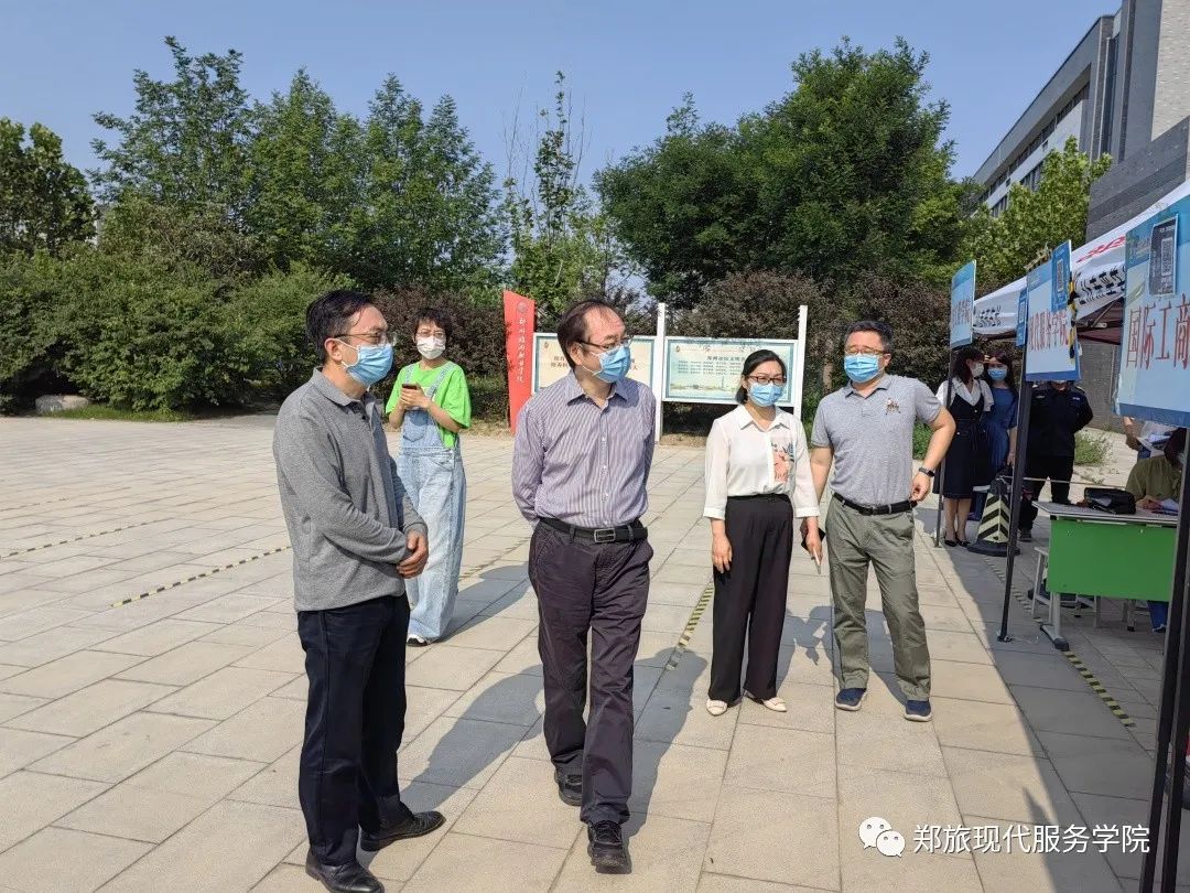 5月24日上午,校长文广轩视察现代服务学院2022年专升本考生返校防疫安全检查准备工作。现代服务学院院长许向蒲、党总支书记郭防、党总支副书记岳正阳陪同。