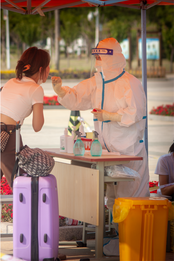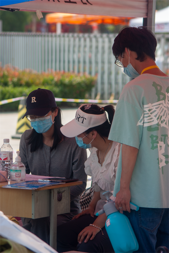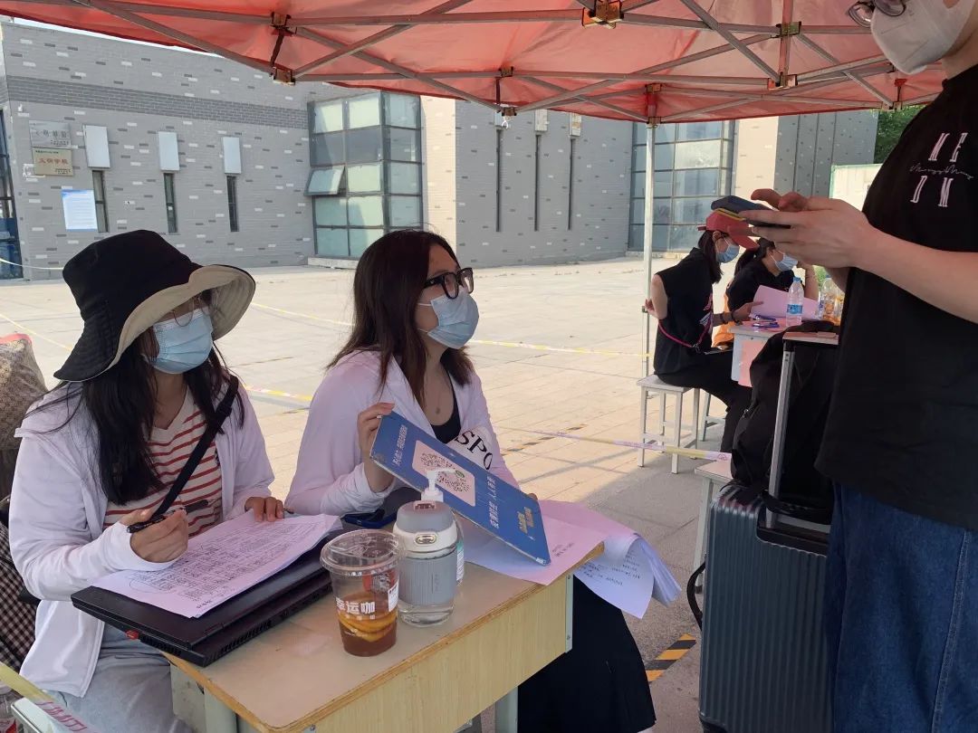 一早班主任、辅导员及学生志愿者便来到工作岗位迎接返校生的到来,每一颗热忱的心都牵挂着归来的学子,每一张笑脸上都挂着久别重逢的喜悦。返校生由南门进入,行李在入口处做统一消杀, “健康六项档案”由班主任、辅导员核验通过后方可入校,进行下一步的核酸检测及领取“住宿通知单”。整个返校流程环环相扣、有条不紊、有序进行。