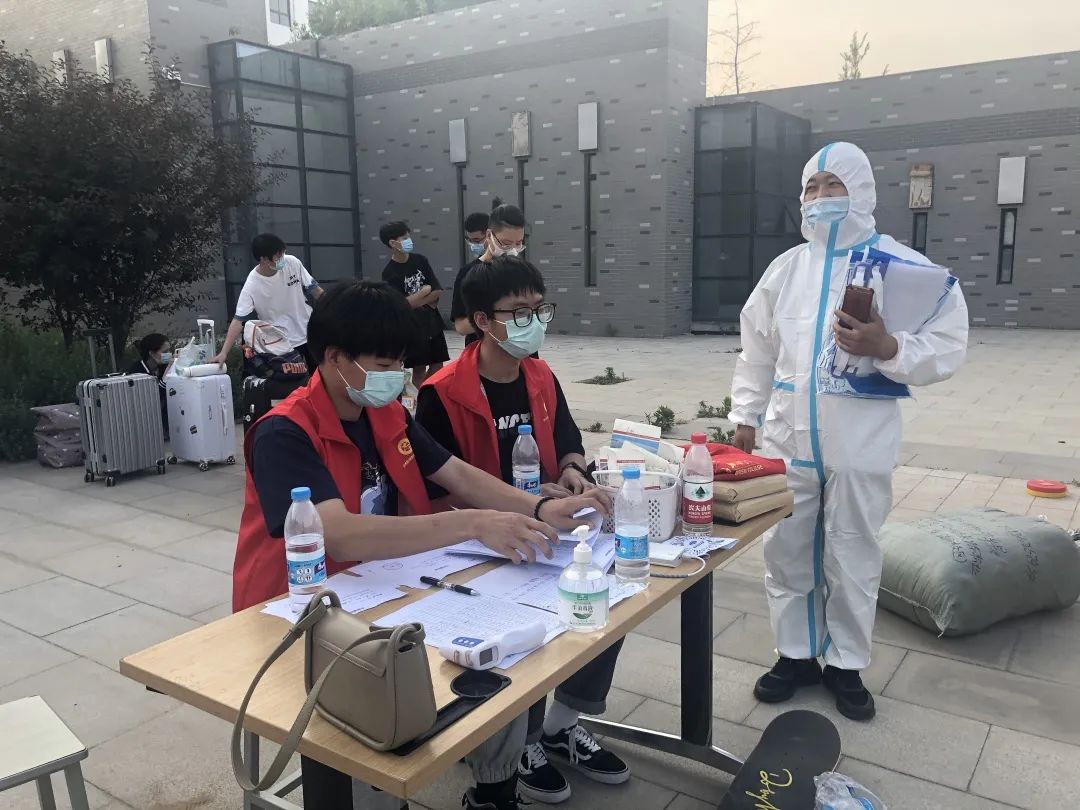 院长张之红、党总支书记张培彦亲临一线,支帐篷、配消杀、部岗位、明流程,确保按照疫情防控要求,考生能够快速有序入校。全体辅导员顶着炎炎烈日进行行李消杀、体温测量、六项健康档案查验、返校登记、核酸检测等工作,报到现场井然有序,工作流程严谨细致,达到疫情防控闭环管理要求。教研室主任张凯、招生干事冉黎涛自己开车到郑州东站配合属地疫情管理部门为中高风险返校学生办理转运隔离手续,保障全部考生能够按照隔离要求顺利参加考试。