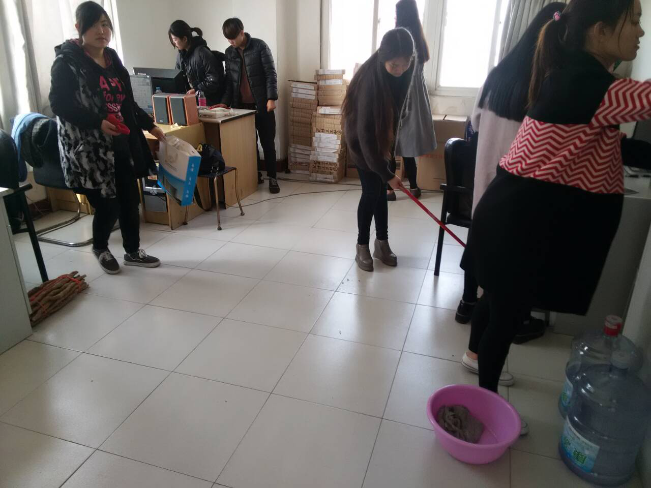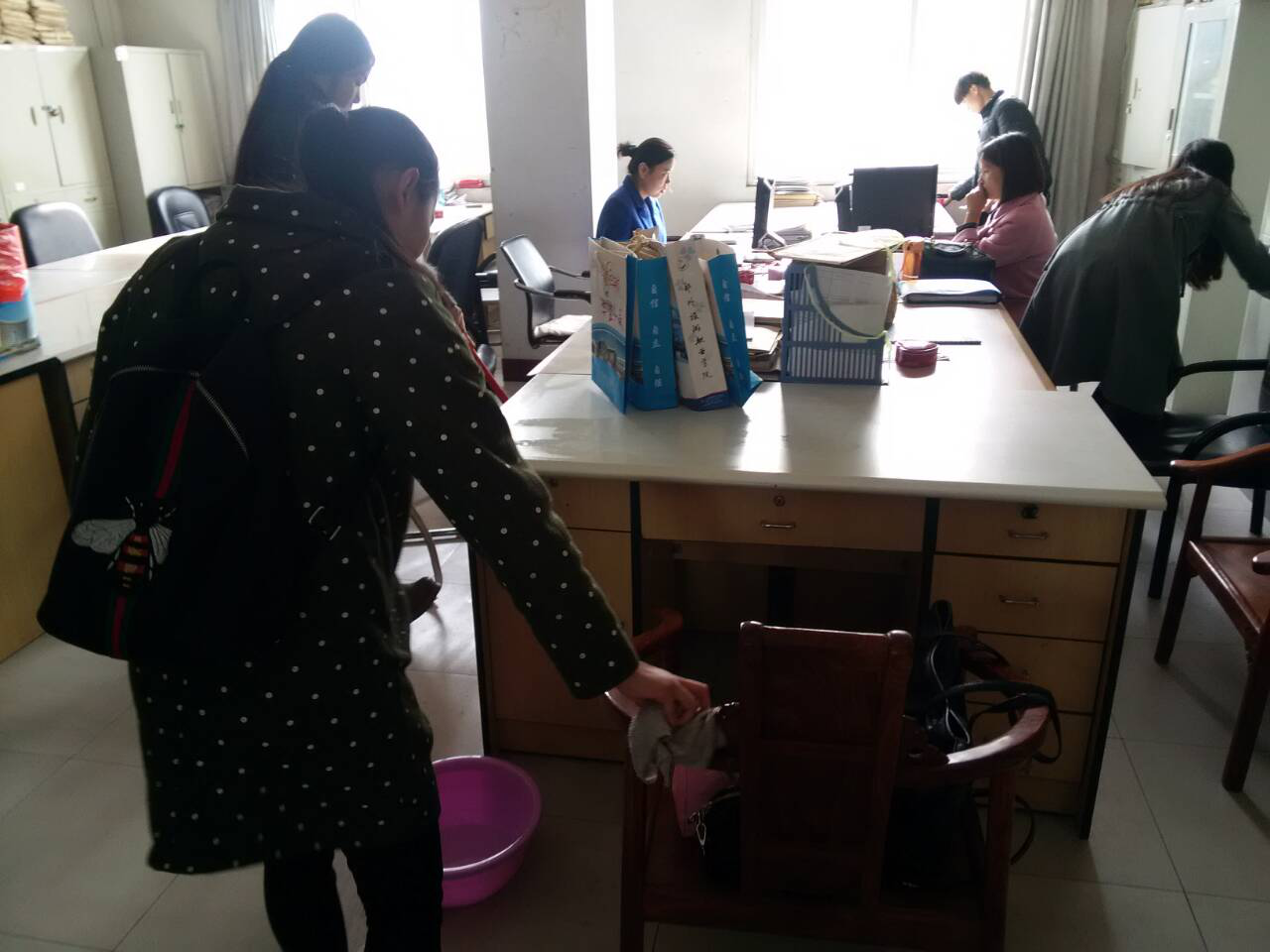 2016年11月08日中午,为进一步美化教师办公环境,为老师营造良好的办公环境环境,社会服务系志愿者利用午休的时间进行了办公环境清扫活动。
