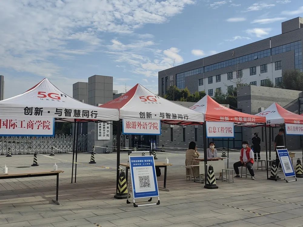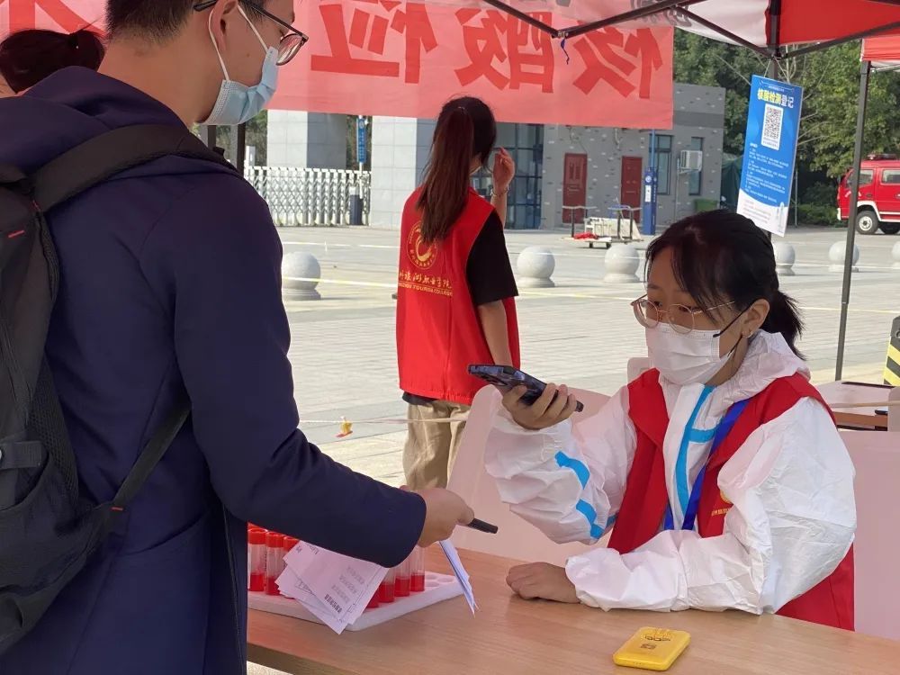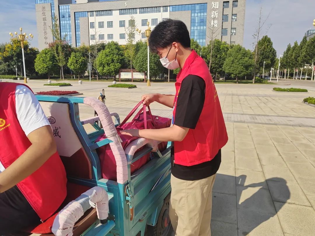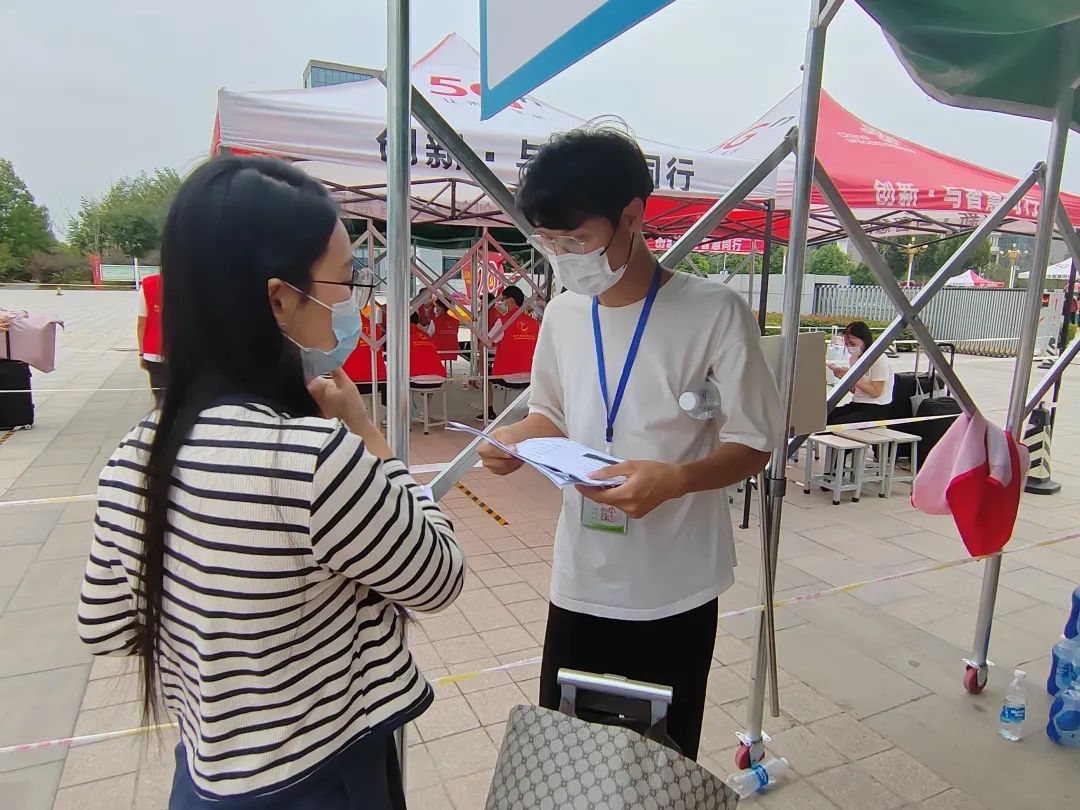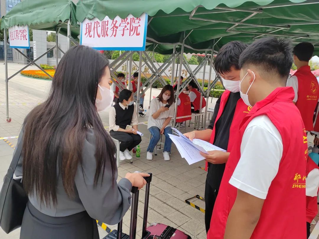 以心迎生,志愿先行。为助力老生顺利返校,让老生感受到学校的温暖,开启崭新的学期,校团委组织志愿者队开展迎接老生志愿活动。为积极响应学校疫情防控规定,全体师生全程佩戴口罩,志愿者工作在南门开展,并配有小推车。早晨7点20分,各位志愿者便已经迎着习习秋风在自己的岗位严阵以待了,他们身着统一红色志愿服,在做好个人防护的情况下,保障校门口出入的通畅,积极为返校老生服务,入校引导、测温消毒、审核健康档案、核酸检测、行李托运等系列志愿服务工作。暖心助人、热情奉献的“红马甲”成为青春校园里一道亮丽的风景线。