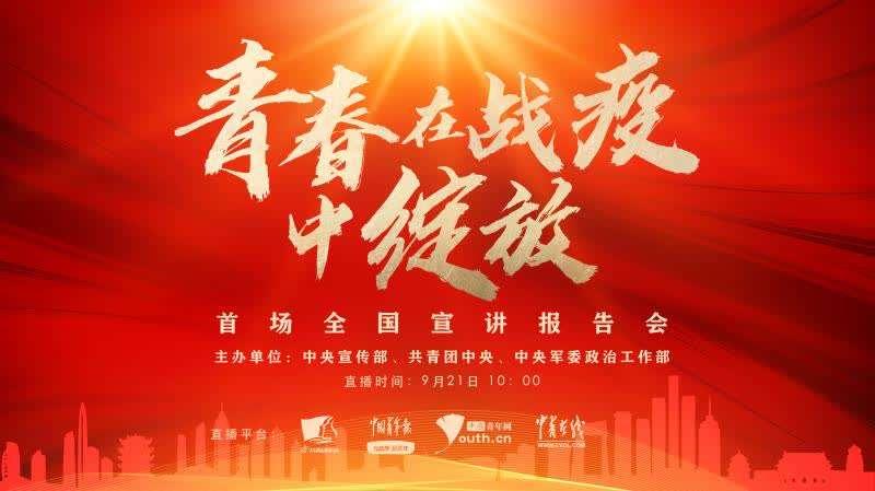 中国青年报客户端北京9月20日电(中青报·中青网记者 胡宁)9月21日上午,由中央宣传部、共青团中央、中央军委政治工作部联合主办的“青春在战疫中绽放”首场全国宣讲报告会将在人民大会堂举行。