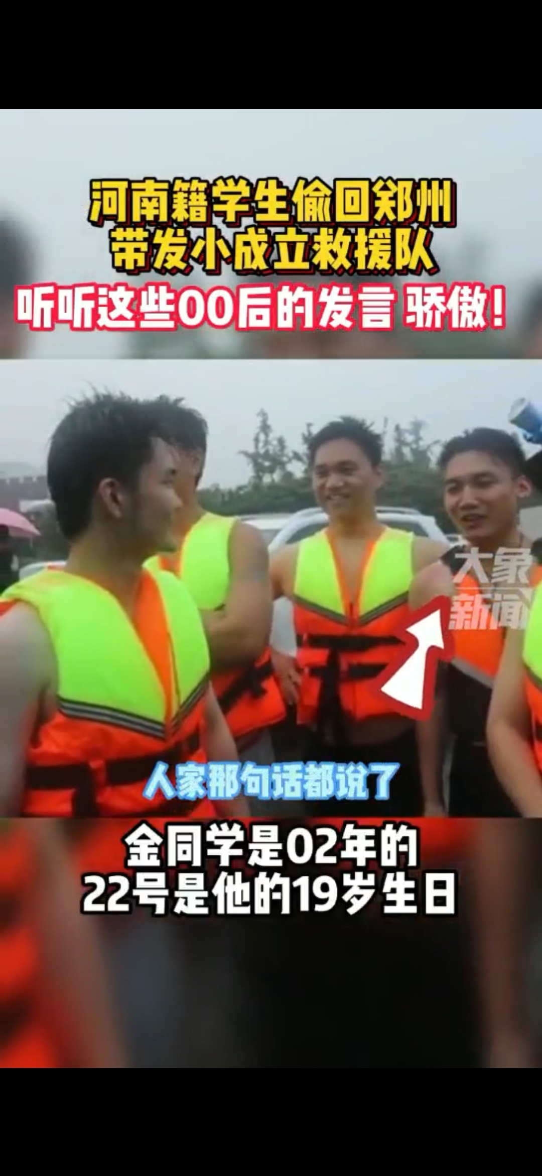 34、pp电子游戏平台网站酒店管理学院20级酒店管理14班的金辰旭,7月22日正是他的生日。他和他的小伙伴们背着家人,自发的前往汛情最严重的龙子湖附近参与物资搬运、人员转移等救援活动。正如他们所说,咱不就是年轻嘛,年轻人就应该在国家有难时挺身而出。