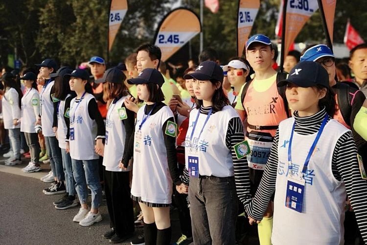 此次郑州国际马拉松开始时间为早上8点,为保证提前到岗进行服务,我院志愿者当天凌晨3点就已经起床进行准备,穿好指定服装、带好所需物品,在校门口集合后于4点出发,5.20准时到达主会场及终点会场进行准备工作。