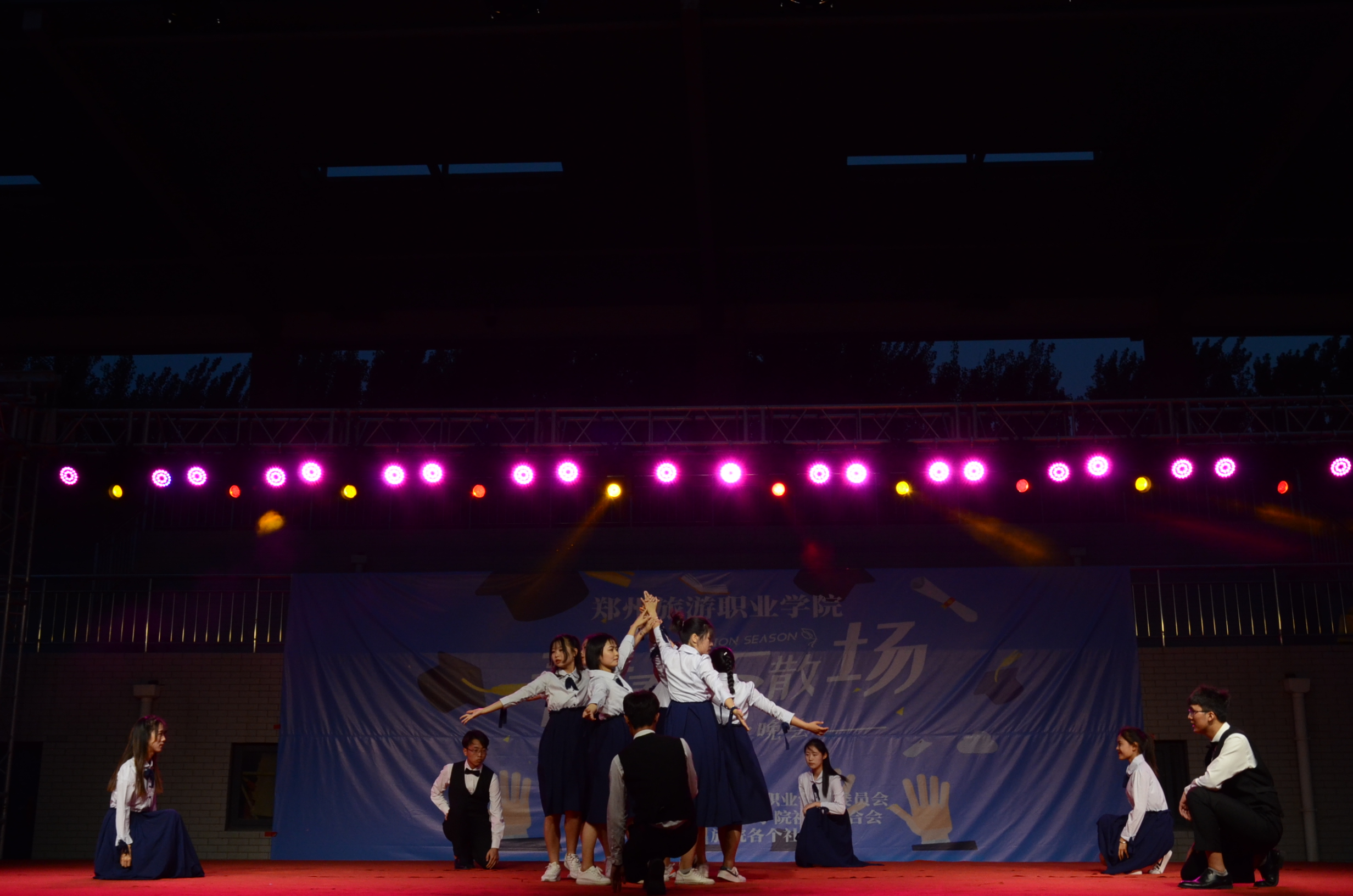 此次毕业晚会为大家呈现了一台精彩异常的演出,给将去离校的同学们留下了一个美好而难忘的夜晚。更是体现了我院学生奋发向上、积极进取的精神。又一批学子将迈出学校的大门,走向另一片新的天地,愿他们身披母校的荣光,朝着各自的梦想,乘风破浪,勇往直前。