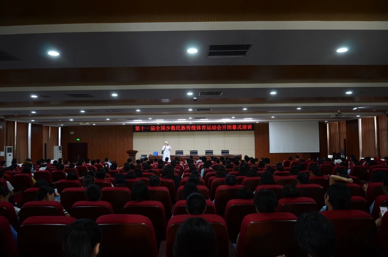 8月30日上午8点我院在象湖校区综合楼C座四楼会议室举行第十一届全国少数民族传统体育运动会开闭幕式演出人员化妆培训。特邀化妆师对来自全院436名开闭幕式仪式和演出人员进行了培训。