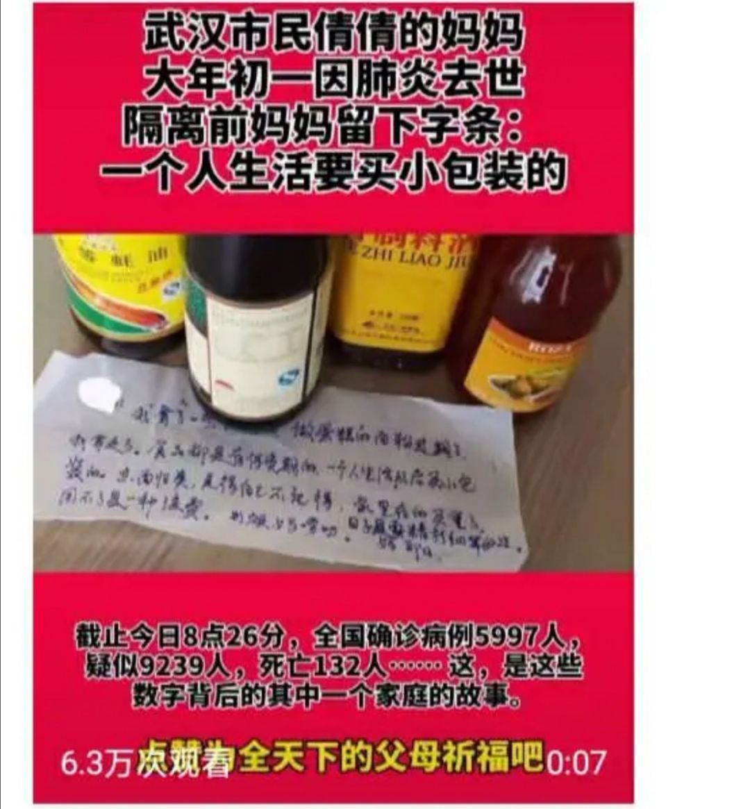 1.好好孝顺父母,时间太短陪伴太少最近两天,因为疫情感染,很多亲人不得不生生分离,有的甚至失去了至亲。见者无不流泪感伤。刷到过这样一个视频,一位母亲因疫情感染不治身亡,为防感染,医院将母亲的遗体要送到安全的地方火化。这位母亲的女儿跟在车后面,痛哭流涕,一声声地喊着“妈妈,妈妈”,撕心裂肺,刻人心骨,仅仅是看着视频,心里仍久久不能释怀。