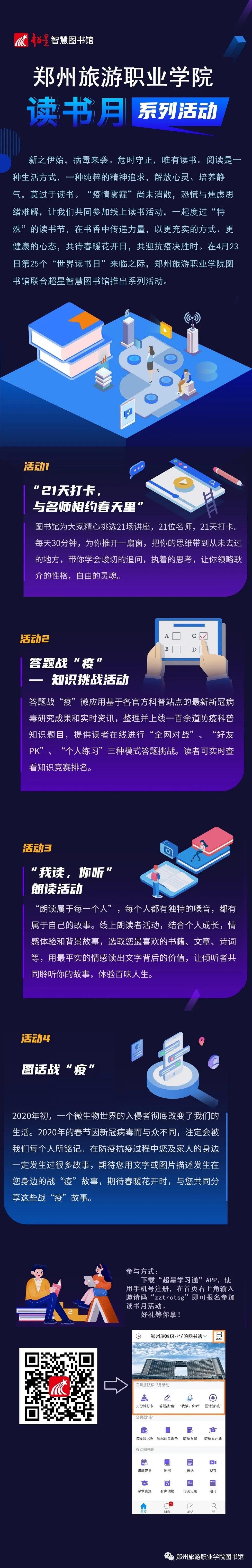 在第二十五个世界读书日来临之际,疫情尚未消散,为丰富师生读者们的精神文化生活,我馆联合超星智慧图书馆在这个四月开展“线上读书月系列活动”。