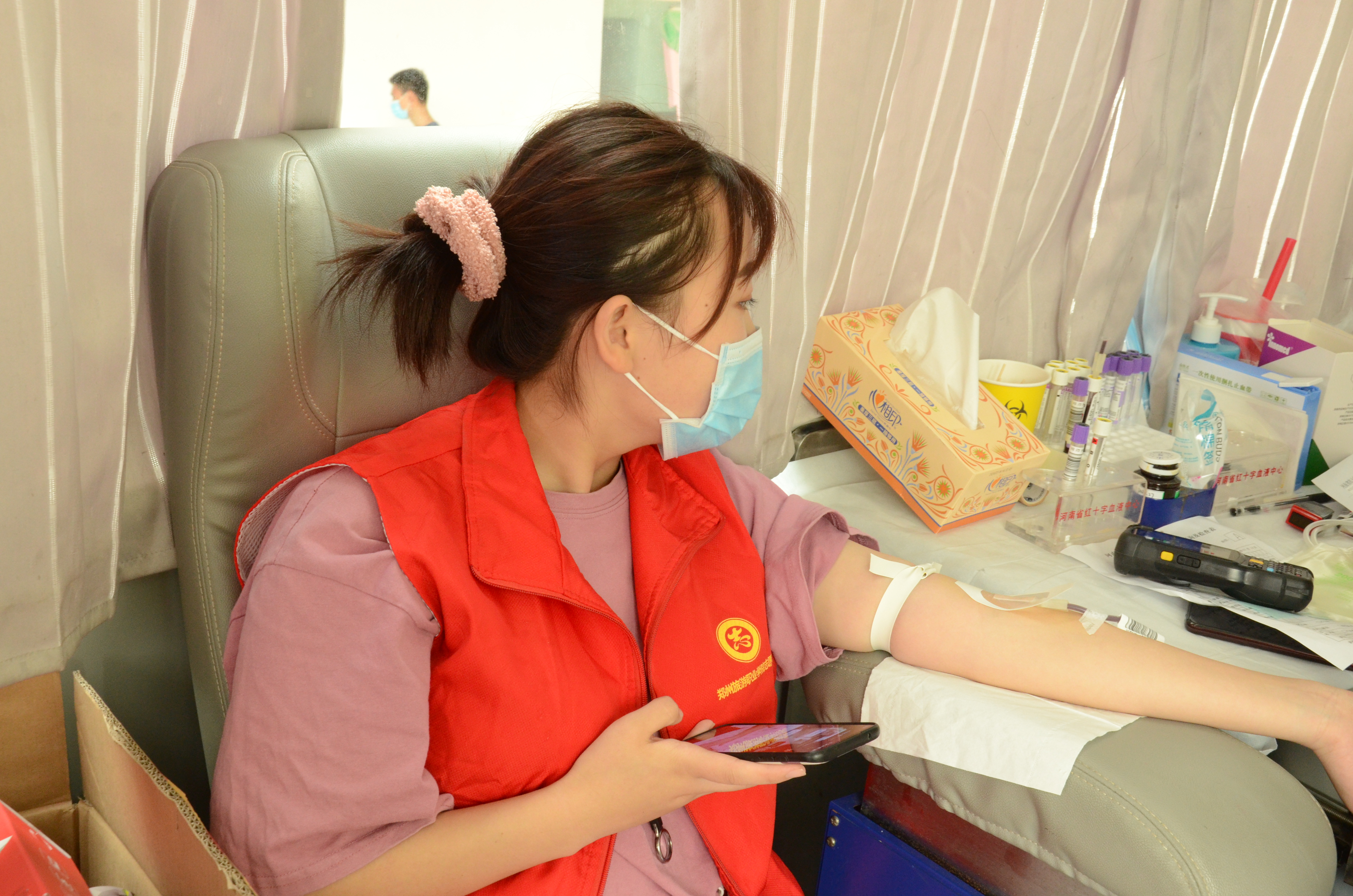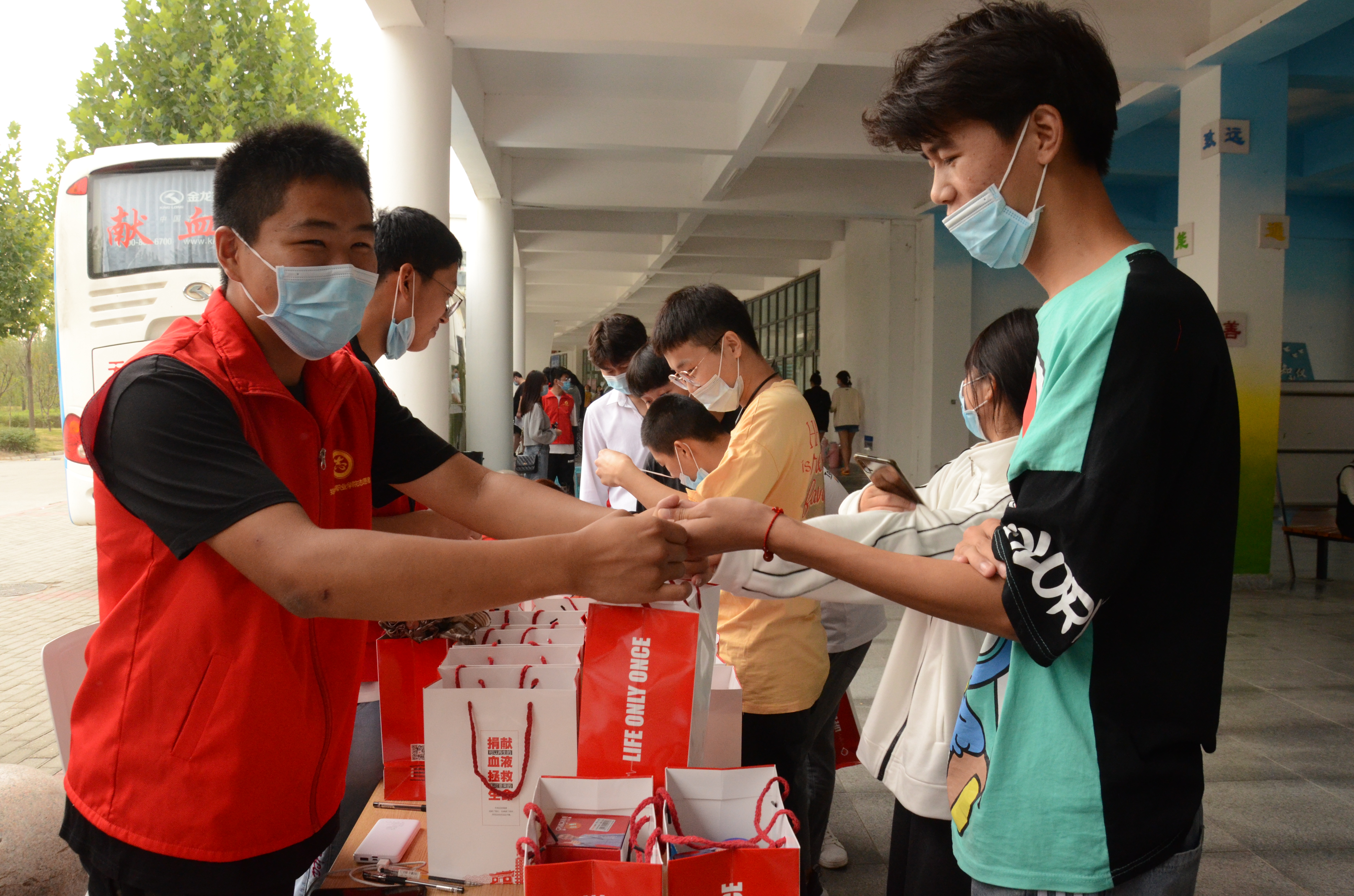 献血的同学中,有连续多年参加志愿献血的,也有第一次参加志愿献血的,有的紧张有的从容,现场秩序井然。