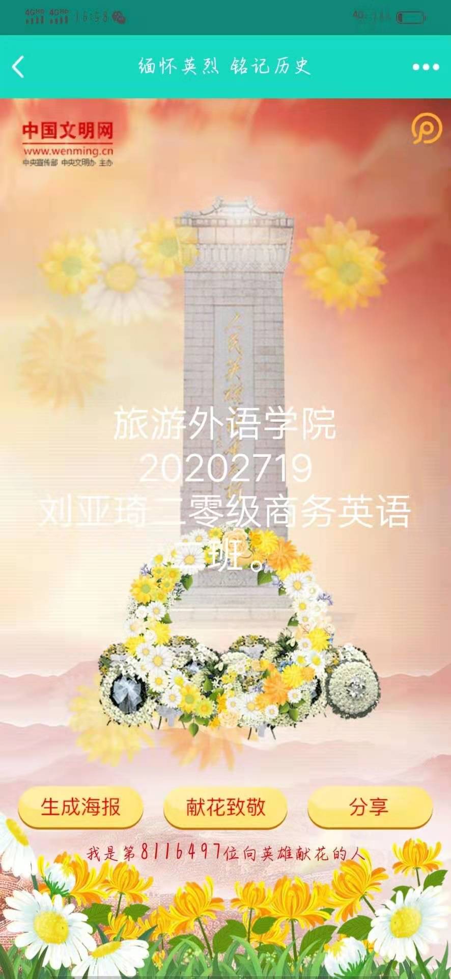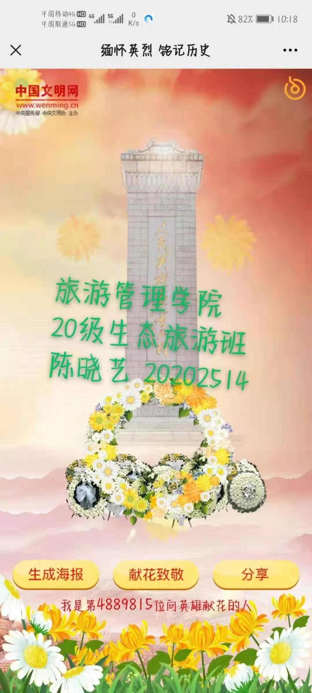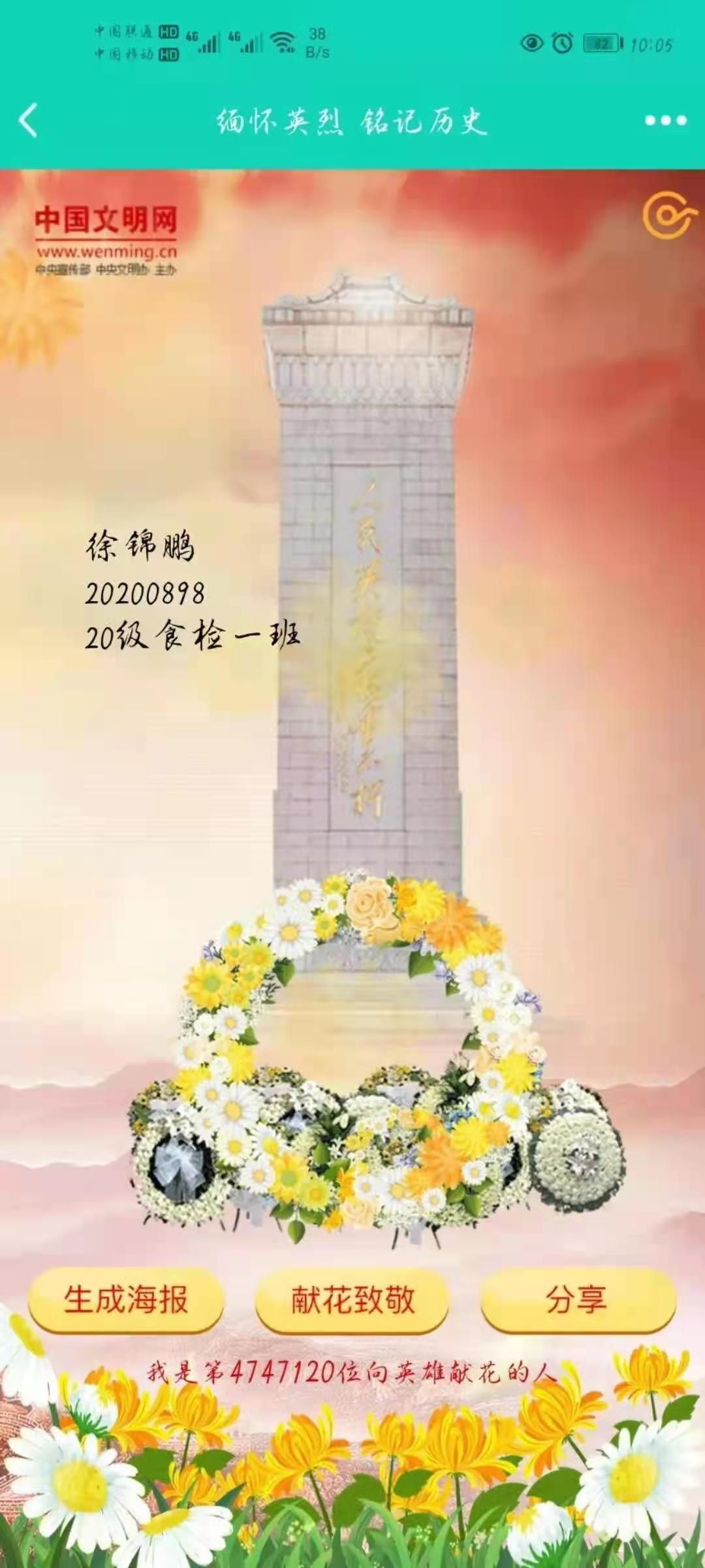 4月1日—5日,为推进党史学习教育入脑入心,落地生根,强化学生对“四史”的学习,增强学生学习党史的行动自觉,促进学生对百年大党辉煌奋斗历程的全面深刻了解。按照党中央,省委、市委关于党史学习教育的统一部署,根据学校党委关于党史学习教育的总体安排和实施方案,结合中央文明网开展的“缅怀英烈 铭记历史— —网上祭英烈”活动,pp电子团委高度重视,迅速行动,牢记为党育人,为国育才使命,组织团员青年学生积极参与线上线下祭英烈活动,全面推进“三全育人”接地气有实效。