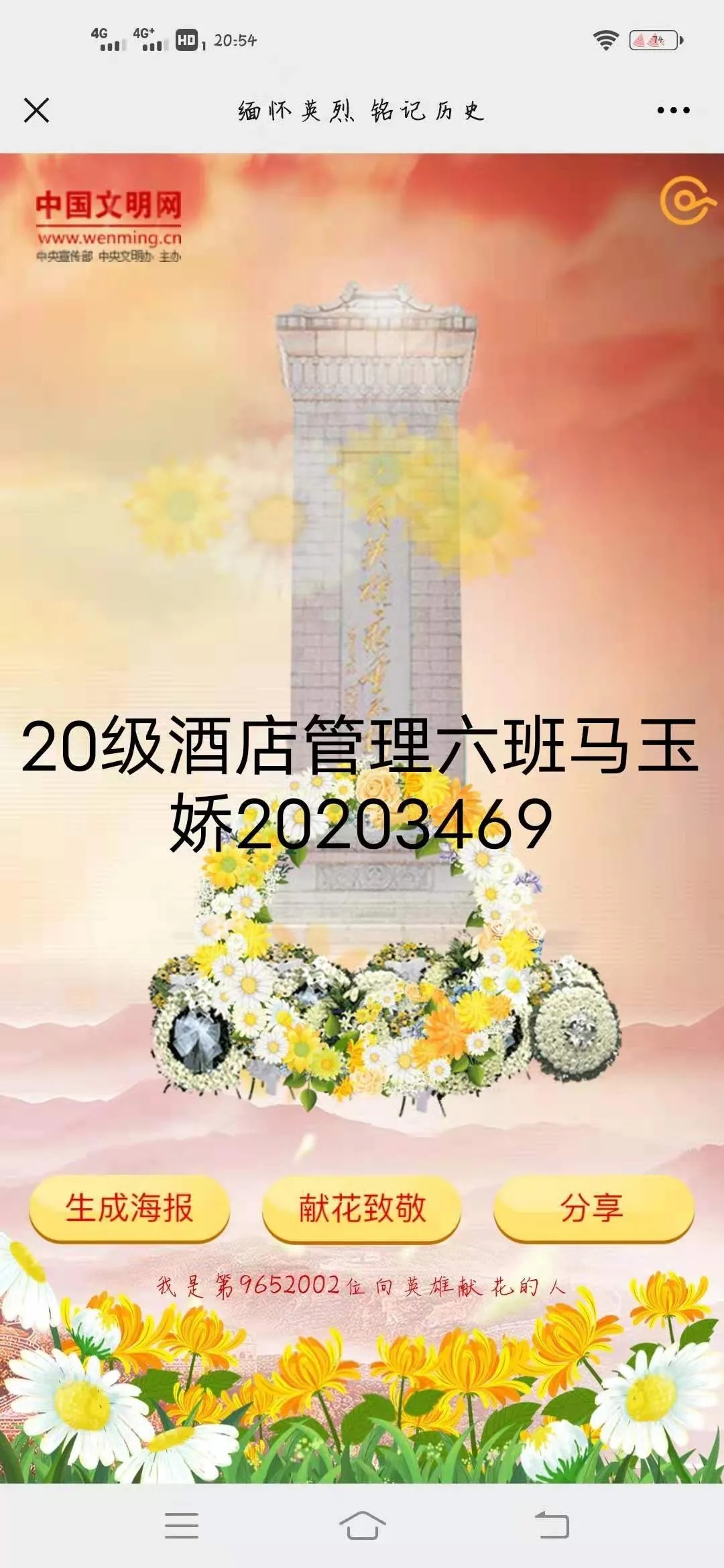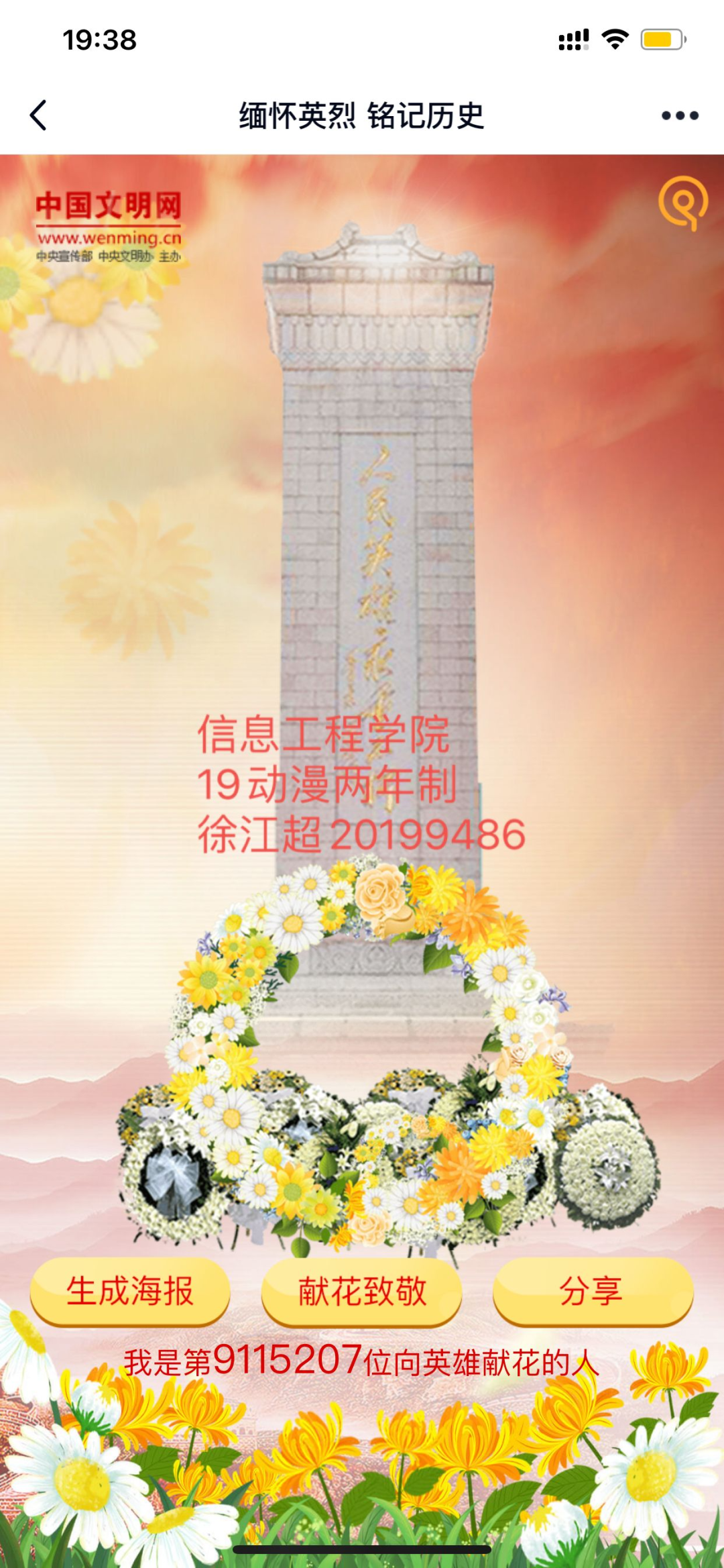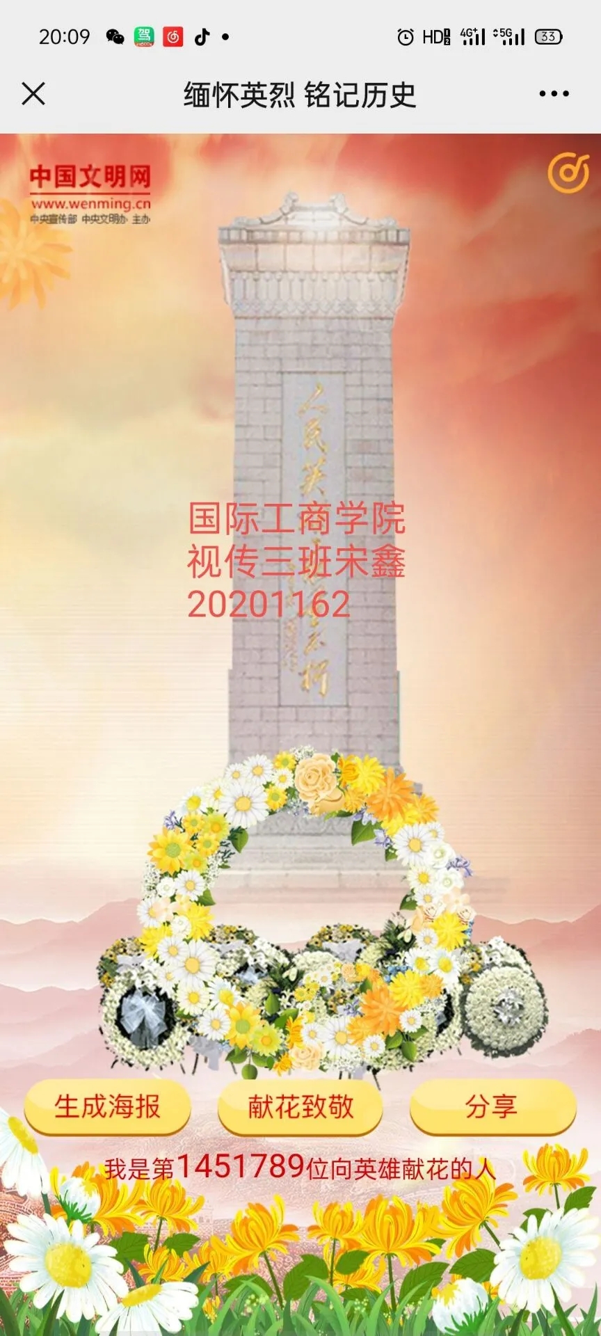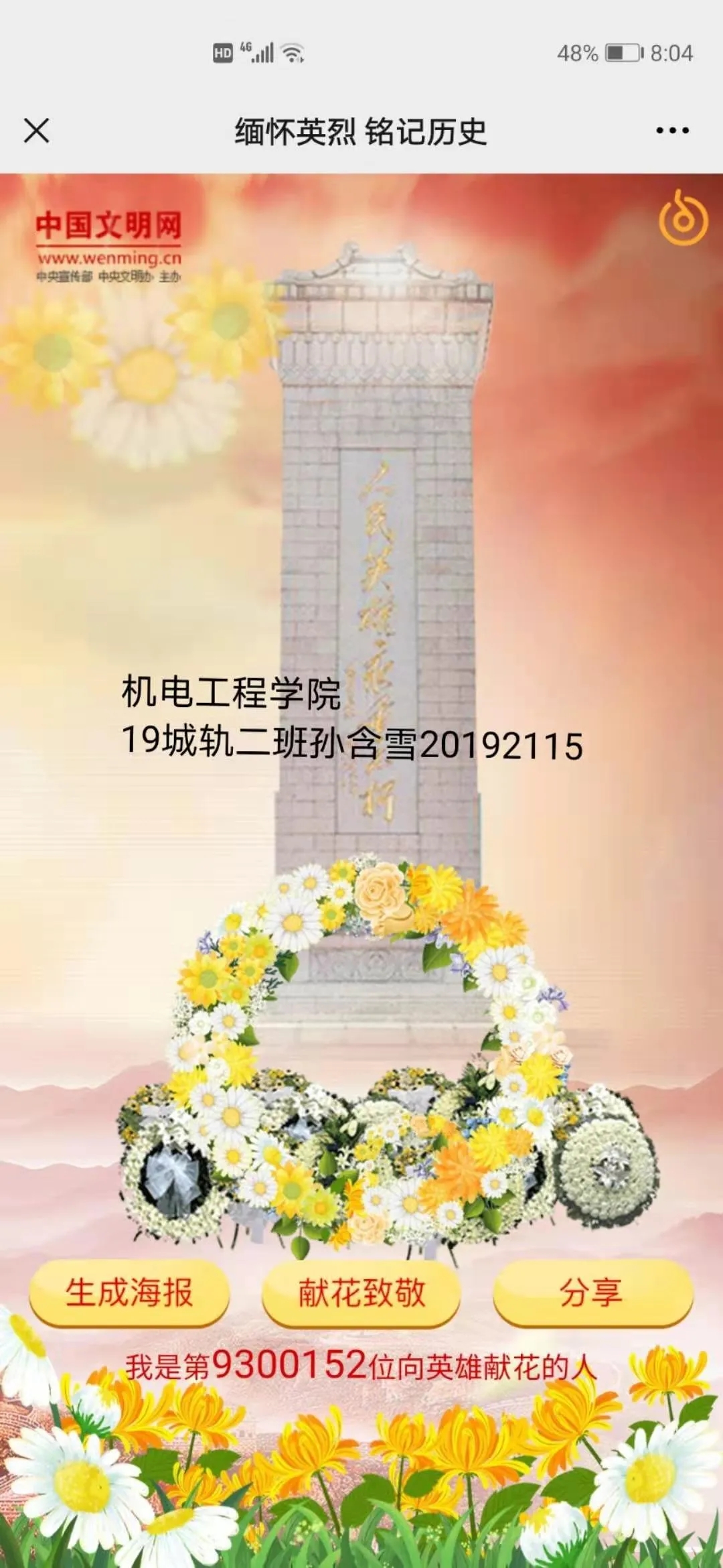 4月1日—5日,为推进党史学习教育入脑入心,落地生根,强化学生对“四史”的学习,增强学生学习党史的行动自觉,促进学生对百年大党辉煌奋斗历程的全面深刻了解。按照党中央,省委、市委关于党史学习教育的统一部署,根据学校党委关于党史学习教育的总体安排和实施方案,结合中央文明网开展的“缅怀英烈 铭记历史— —网上祭英烈”活动,pp电子团委高度重视,迅速行动,牢记为党育人,为国育才使命,组织团员青年学生积极参与线上线下祭英烈活动,全面推进“三全育人”接地气有实效。