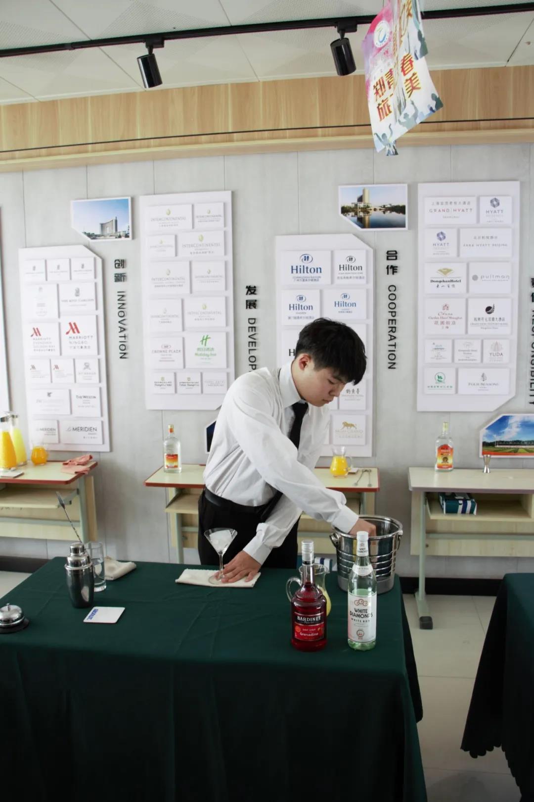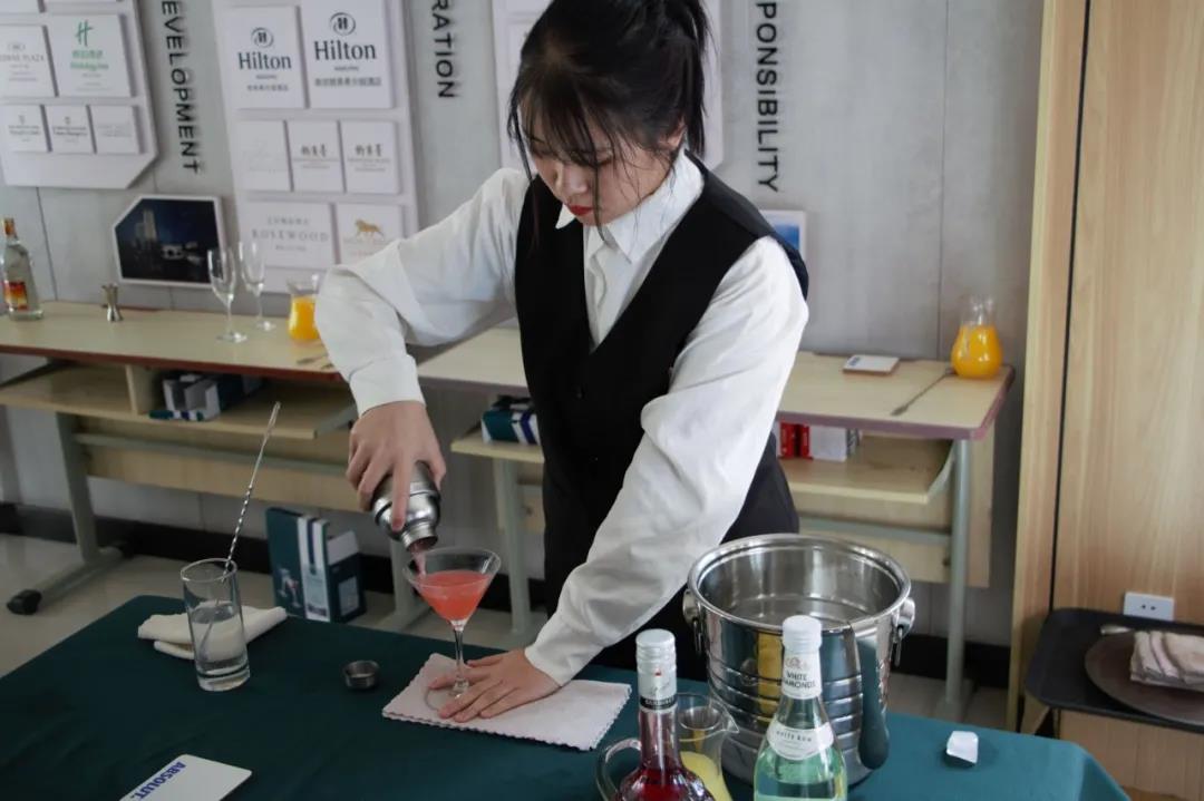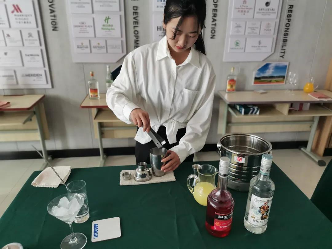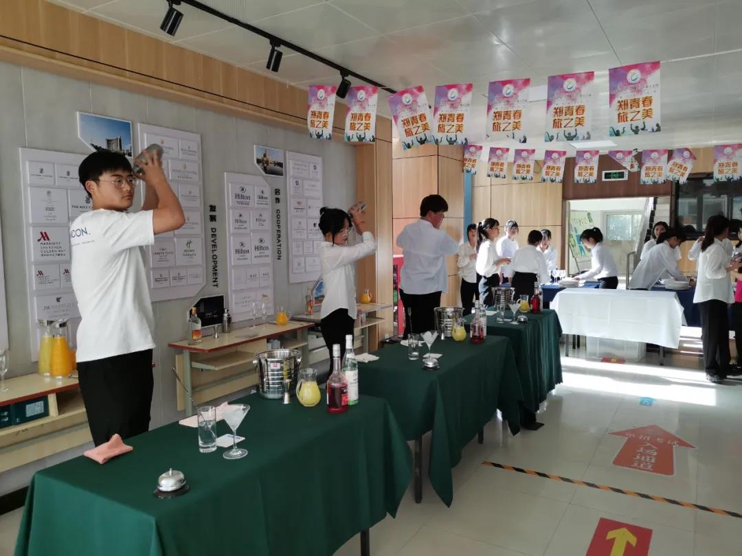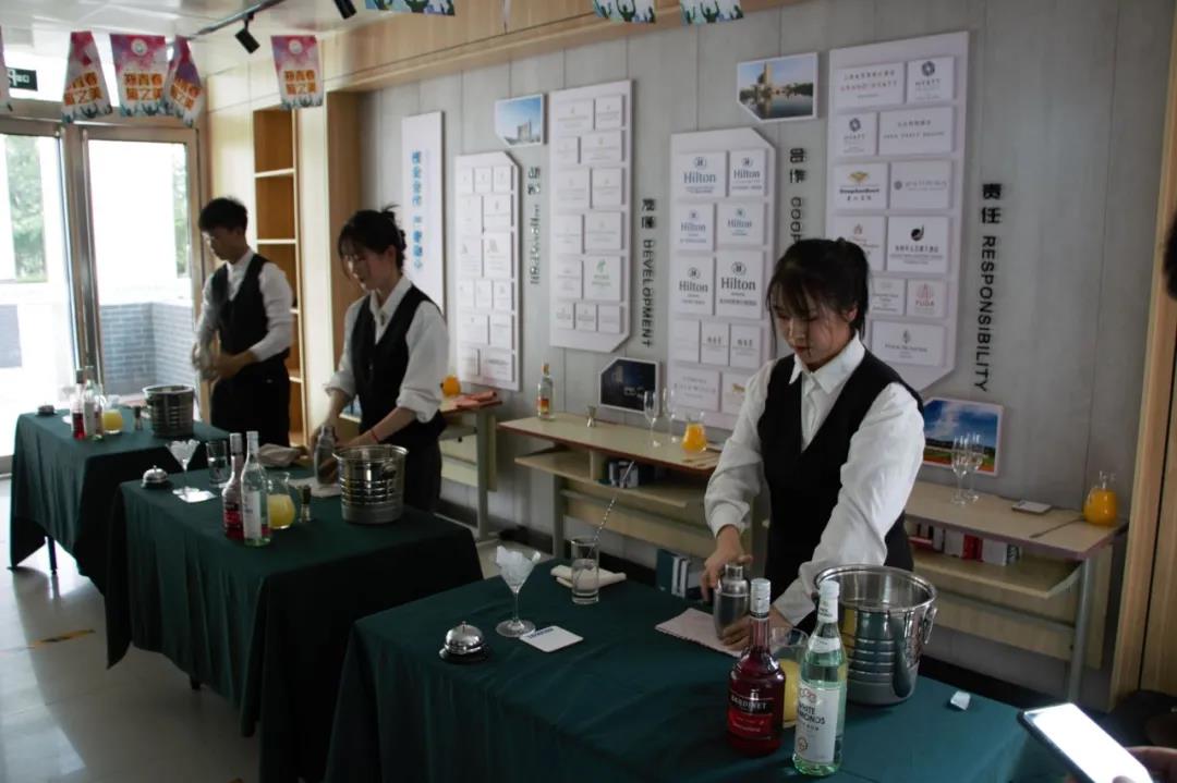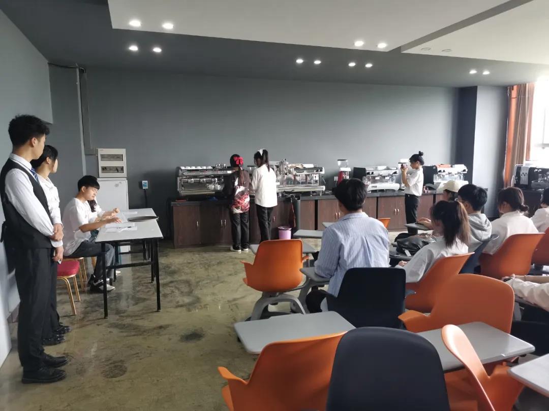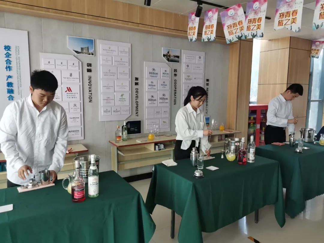为了这次比赛的顺利开展,同学们在比赛开始前两周就开始准备,他们每天在酒吧实训室、咖啡实训室进行培训和练习。在比赛现场同学们“各显神通”都显示出了自己优秀的技能和专业素养。