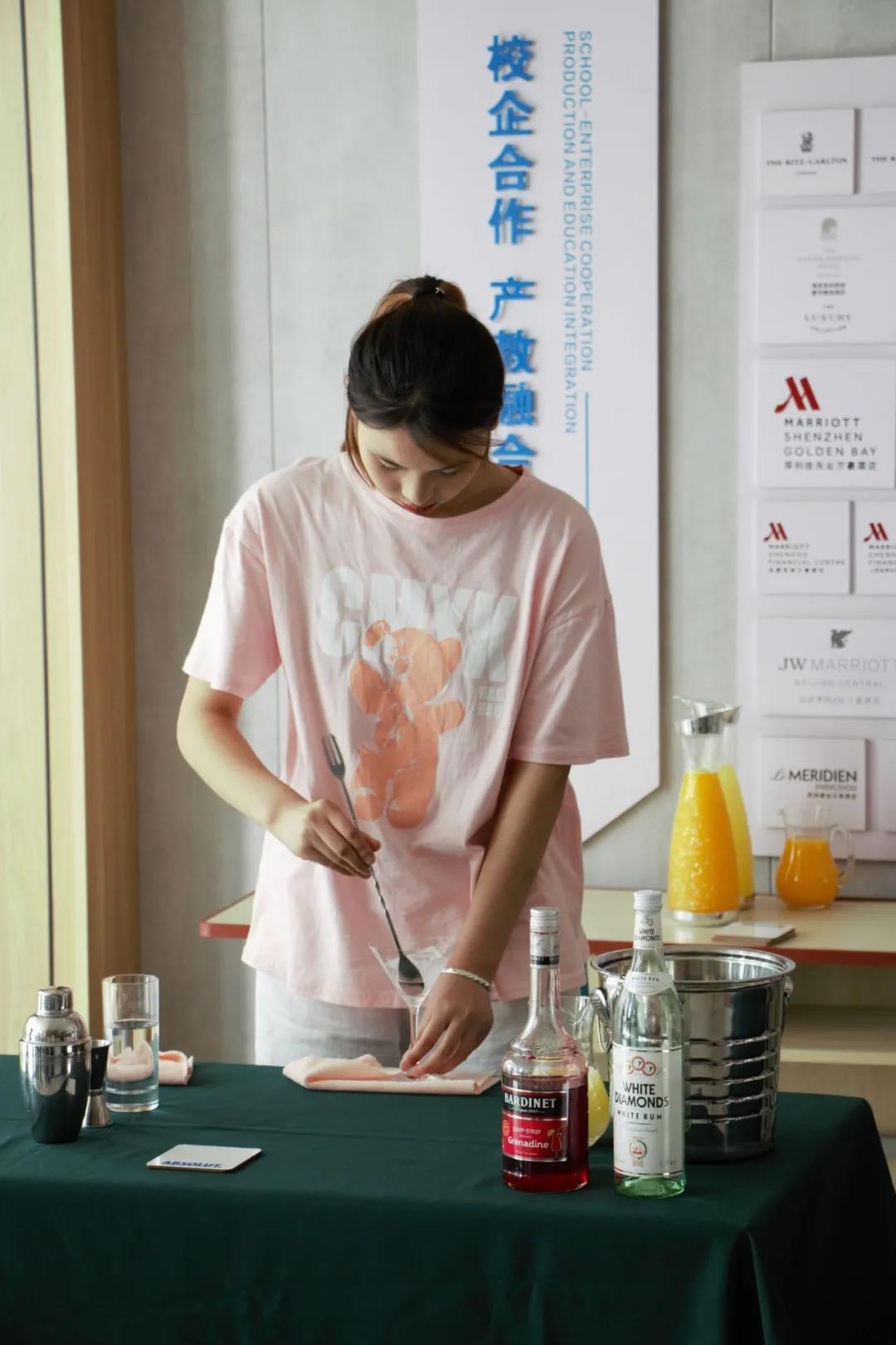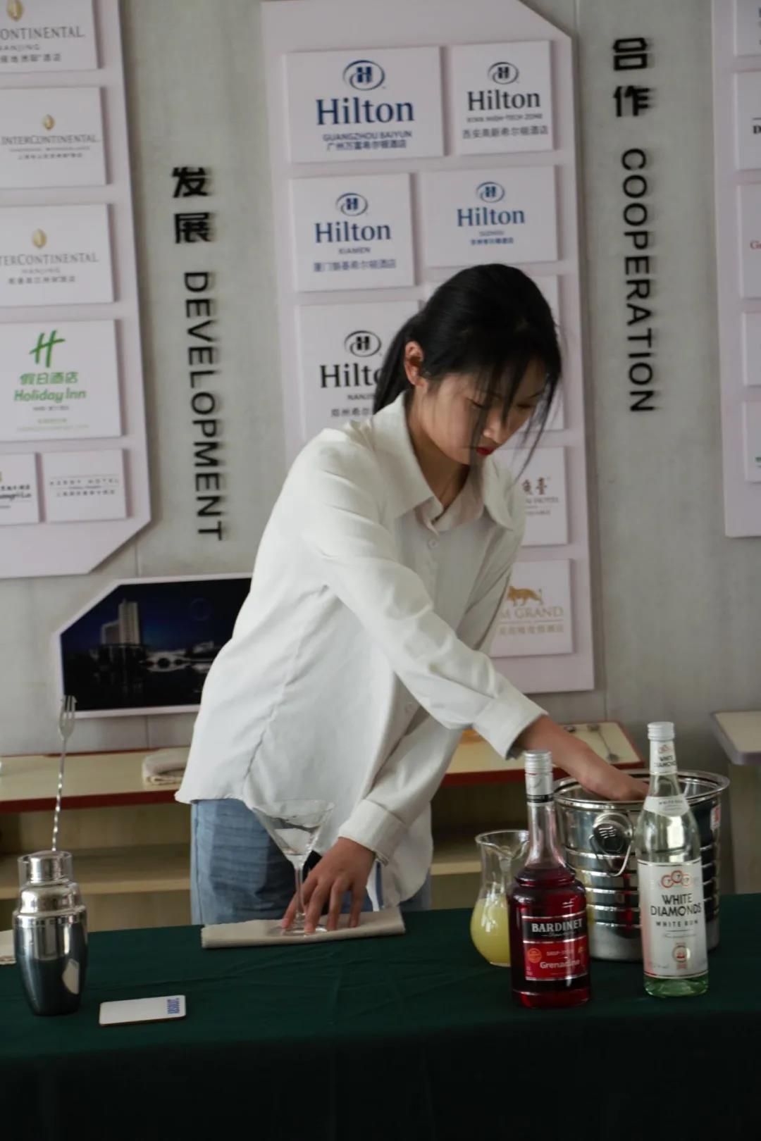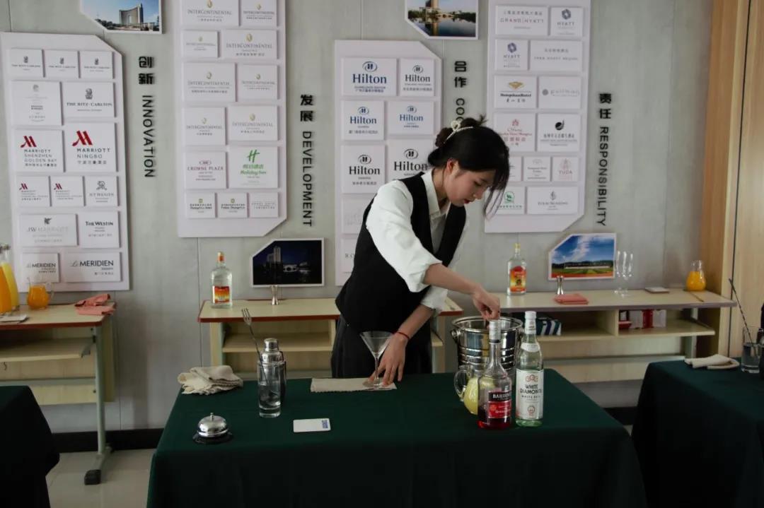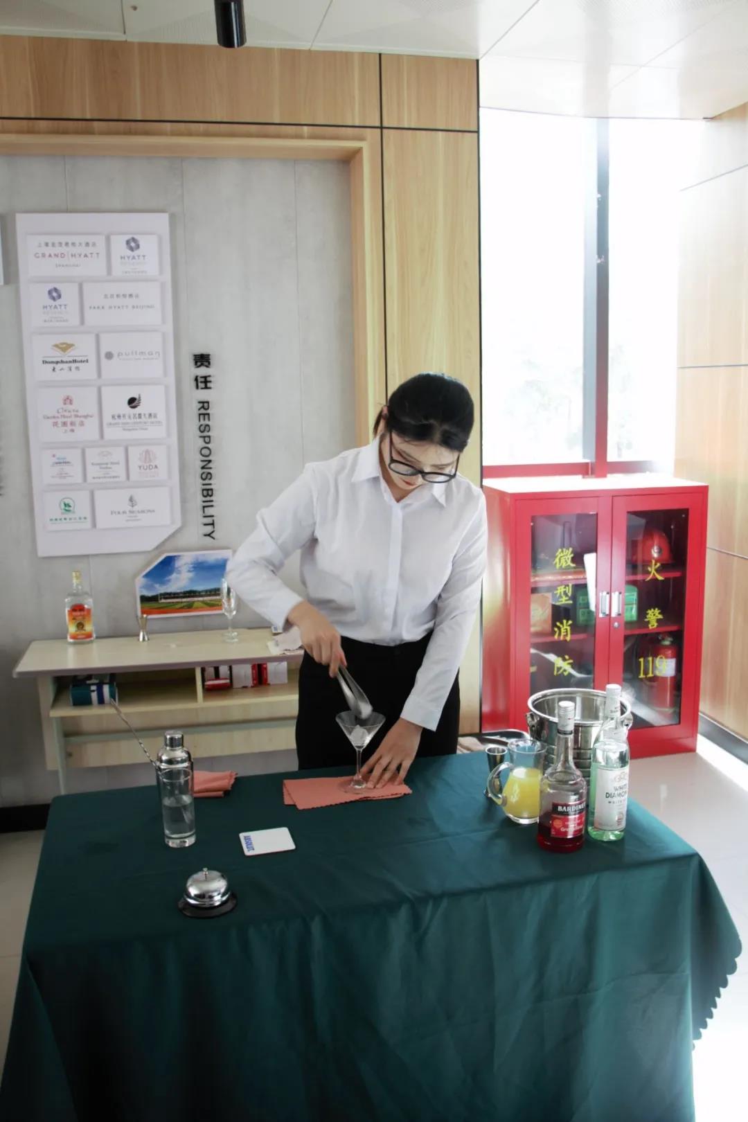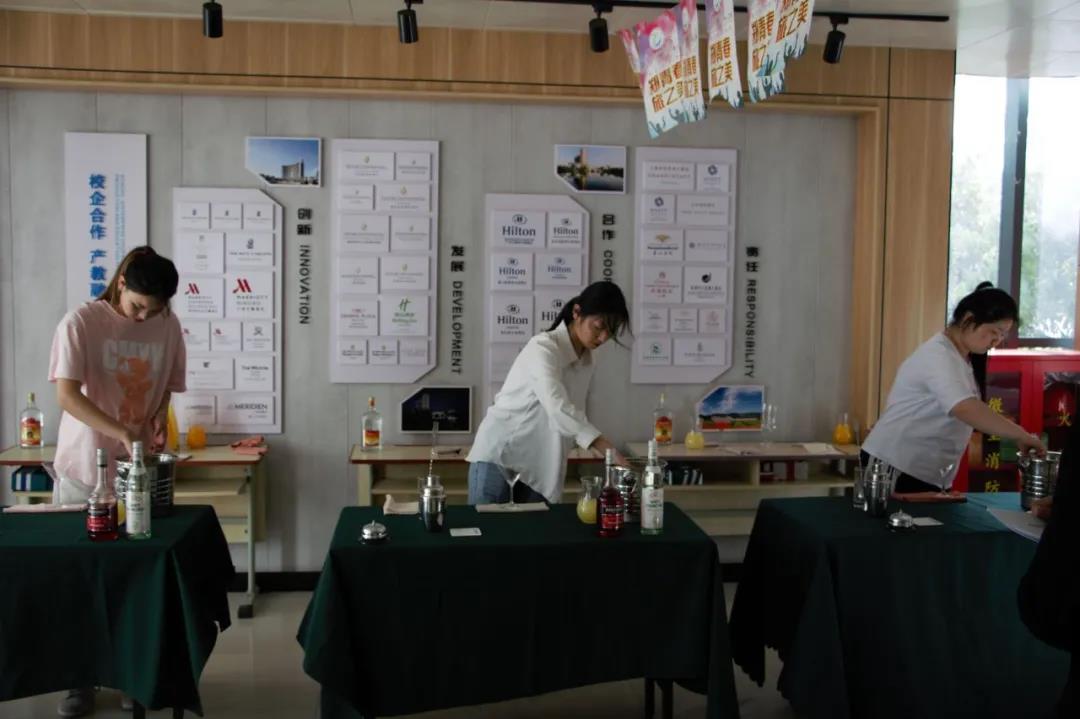 为了这次比赛的顺利开展,同学们在比赛开始前两周就开始准备,他们每天在酒吧实训室、咖啡实训室进行培训和练习。在比赛现场同学们“各显神通”都显示出了自己优秀的技能和专业素养。