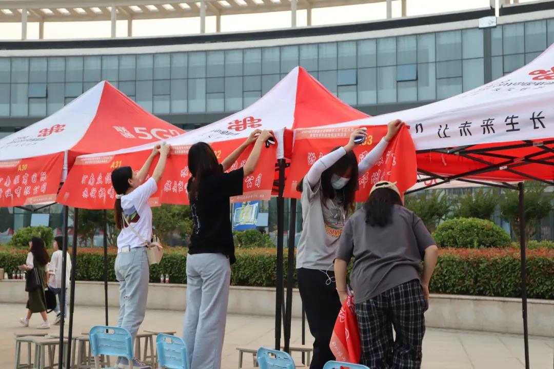 在双选会现场,我们重点围绕场地布置、桌凳搬运、疫情防控、礼仪引导、现场咨询等方面为师生提供服务,紧密联系师生,全心服务师生,进一步增强团组织的凝聚力、号召力和向心力。