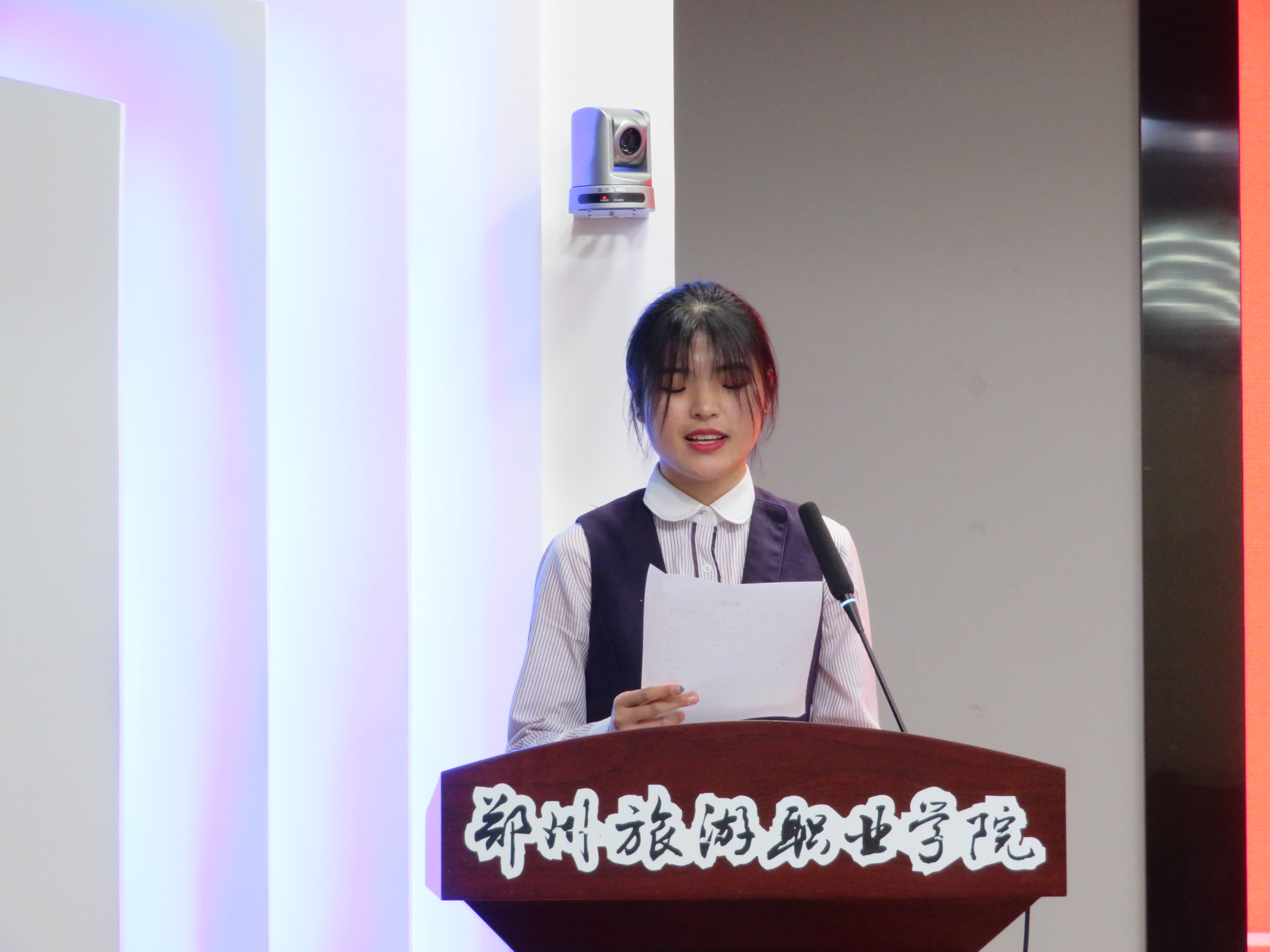 接下来,由2020级团干代表高琳作表态发言。她回顾了加入团委一年来的收获和感受,成长和进步。新一届团干将砥砺奋进,创新担当,开创新的未来。
