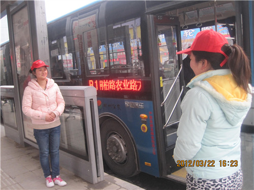 下午4点,头戴小红帽的志愿者们整齐的站立在公交车站进出口两侧,或是帮乘客提东西,或是搀扶老人上下车,或是为外地乘客导乘,秉着“从现在做起 从自身做起”的精神为乘客服务。活动过程中,志愿者纷纷表示:雷锋做好事,有一个重要特点,就是从小事做起,从一点一滴做起,我们要在生活中把雷锋精神付诸实践。