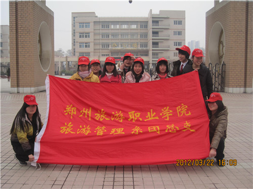 帮助别人,快乐自己,2012年3月22日下午,旅游管理系青年志愿者协会于航海路陈家门公交站牌处开展学雷锋义务服务活动,本次活动旨在发扬雷锋精神,让志愿者们体验助人之乐。