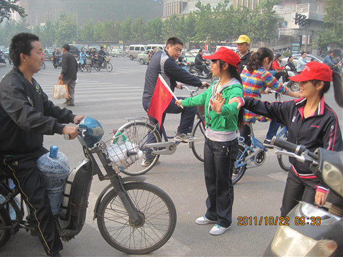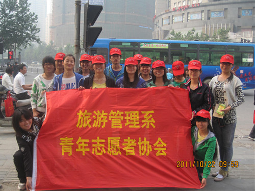 为持续深入开展文明交通志愿服务活动、响应团市委青年志愿者的号召,旅游管理系青年志愿者协会于2011年10月22日到郑州市紫荆山路与商城路交叉口进行文明交通协管志愿服务活动。