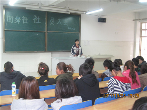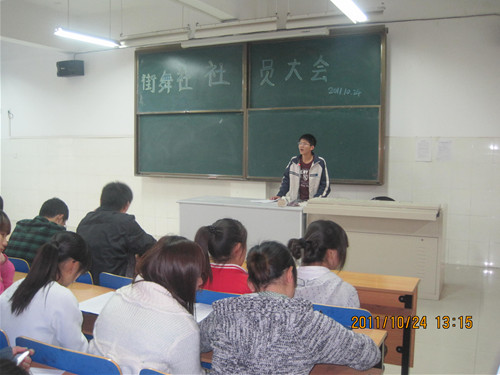2011年10月24日下午1时,旅游管理系街舞社新一届成员全体大会于在西教学楼203多媒体教室召开。参加本次大会的是新一届的社员和旅游管理系社团部的干部及街舞社负责人。