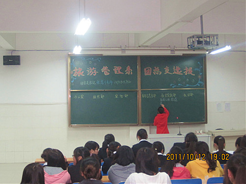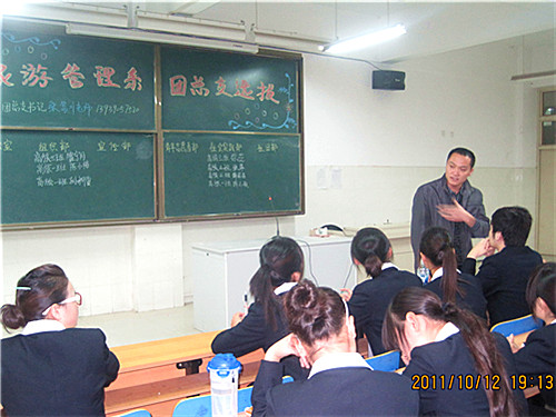 在新生军训结束之际,我旅游管理系于2011年10月12日下午6时30分在西教学楼二楼203多媒体教室进行了“旅游管理系团总支干部选拔”,以寻求新鲜力量,为团总支注入新的活力。