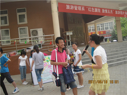为迎接社团展示月,旅游管理系的旅游协会与历史协会于2011年5月20日下午4:00在系报告厅前举办了以“红色旅院,激情五月”为主题的社团展示活动。