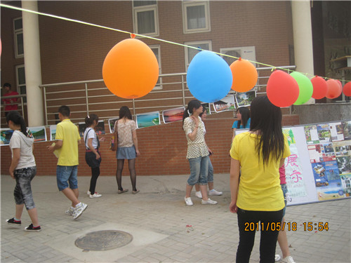 活动的内容主要为旅游景区照片的展览及照片的简介,同学们可以随意的参观了解。同学们在参观这些照片之余还可参加有奖知识竞答,这个环节引起了众多同学的兴趣。同学们可任意扎破挂在绳上的气球,气球里会掉出一张写有试题的纸,然后拿着这张纸交给主持人,主持人会当众念出试题的内容,再由抽到此题的同学回答,回答对的可到领奖处领取奖品,即使答错的也可得到参与奖,以此鼓励。活动在进行了将近一个小时的时间圆满的结束了。