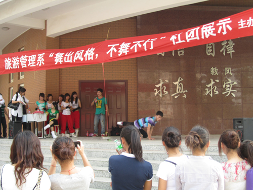 5月24日下午,由旅管系街舞社所开展的社团展示活动在pp电子新教学楼门前火爆开场,缤纷炫丽。