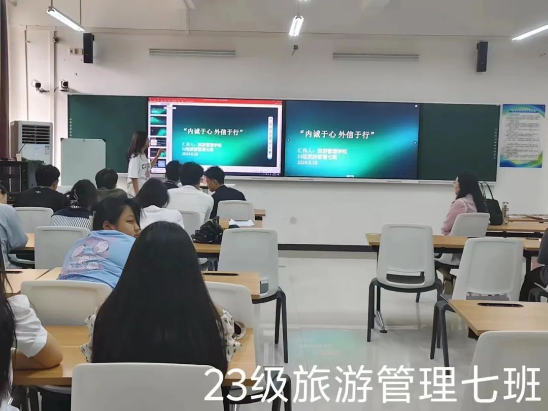 为积极响应学校号召,加强诚信教育、感恩教育和励志教育,培养学生诚实守信、知恩感恩、自立自强、勇于担当的良好品质。6月19日,郑州旅院旅游管理学院组织召开“内诚于心 外信于行”主题班会,班会由各班班主任主持。