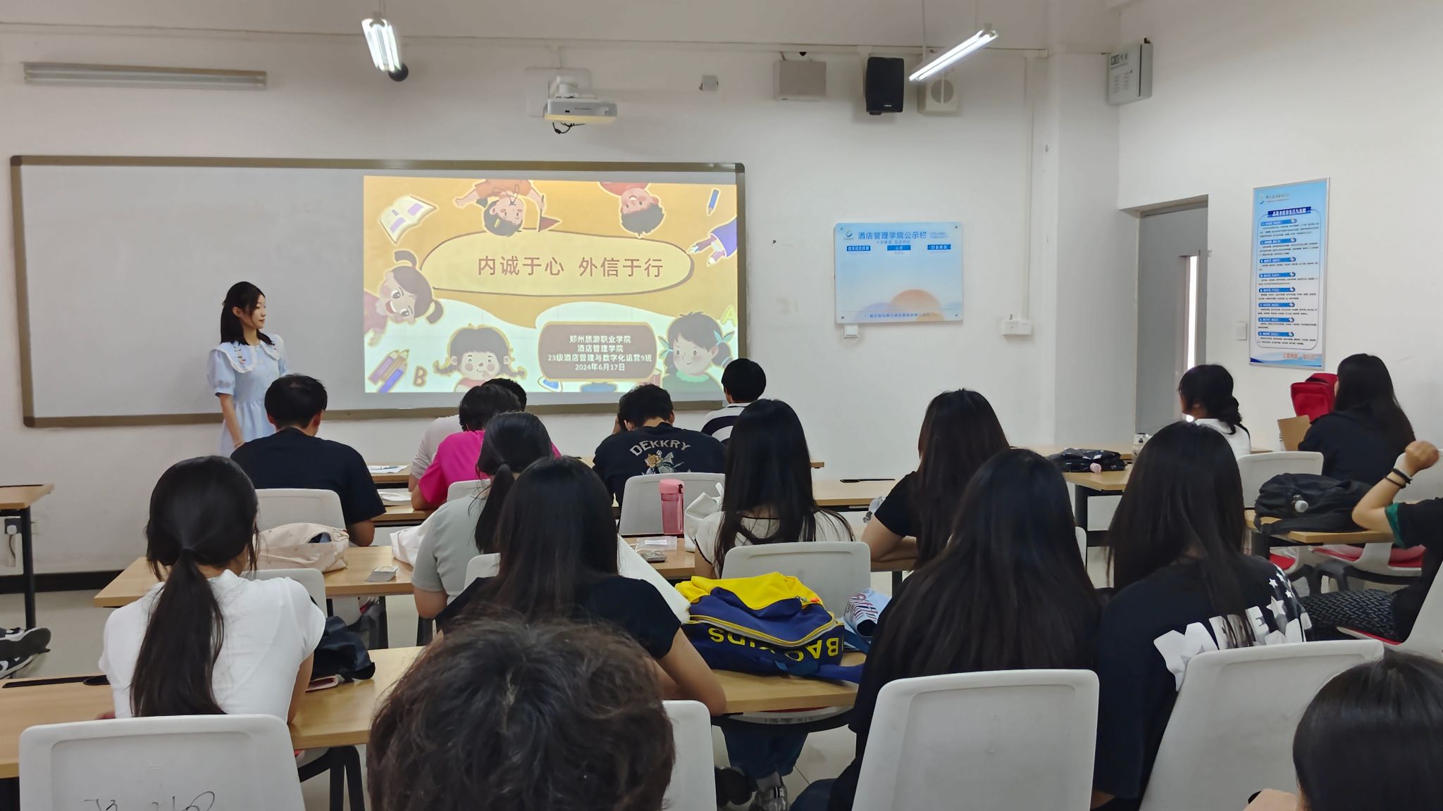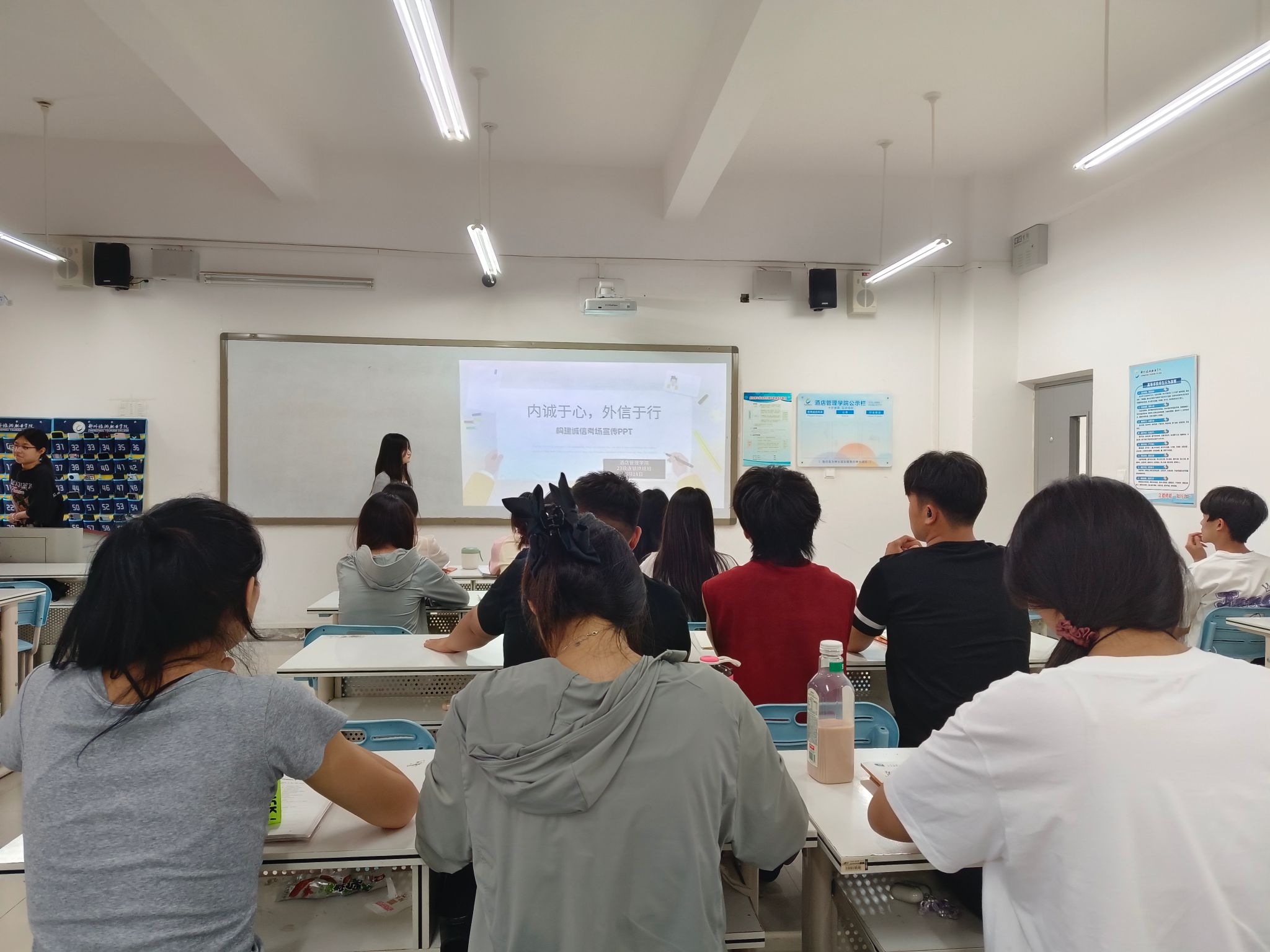 为了深入推进社会主义核心价值观,弘扬诚实守信的传统美德,树立同学们的诚信意识,践行诚信行为,共同构建诚信社会。酒店管理学院于本周召开了“内诚于心,外信于行”主题班会。