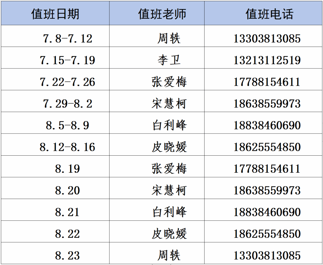 4、以下是心理健康教育中心暑假线上心理咨询值班表: