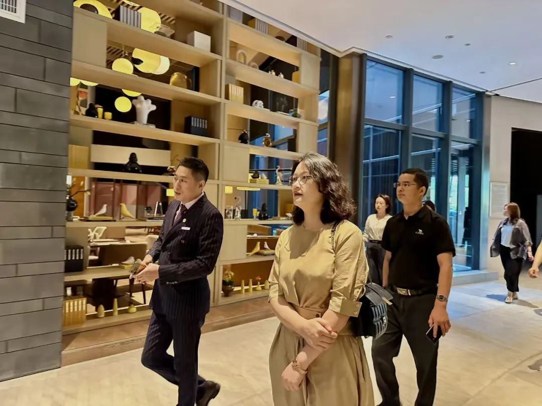 朱娜首先对我院一行老师的到来表示热烈欢迎,并带领大家实地参观了郑州园博园voco酒店,深度体验酒店业的高端服务与精细化管理。随后,双方开展座谈交流,加强深度联建,就党建引领、校企合作、人才培养、实习就业、成果转化等方面的话题展开了深入交流和意见交换,进一步推动了双方各项业务的有机融合。