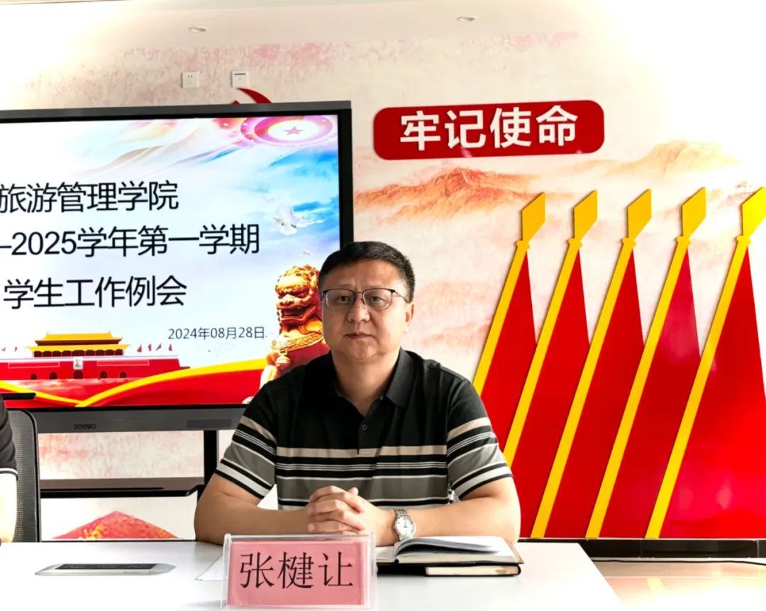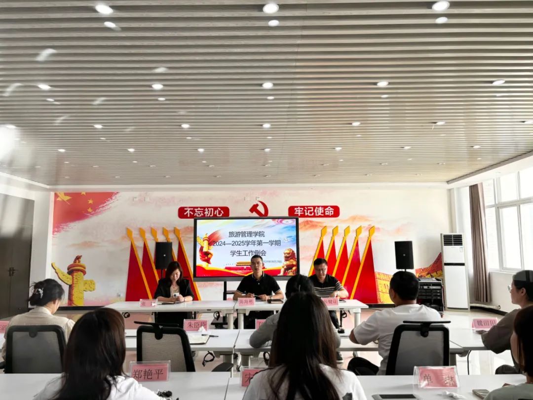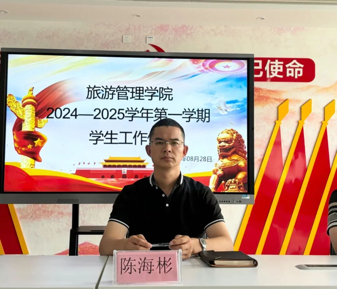 为扎实推进新学年各项学生工作有序开展,持续提升学生工作质量,8月28日上午,旅游管理学院在5A党建馆内召开了2024—2025学年第一学期第一次学生工作例会,旅游管理学院党总支书记陈海彬、副书记张楗让、团总支代书记张颖及全体辅导员出席本次会议,会议由张楗让主持。