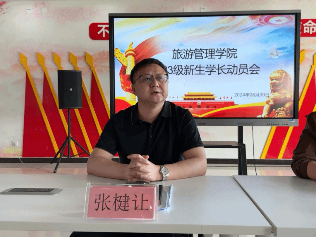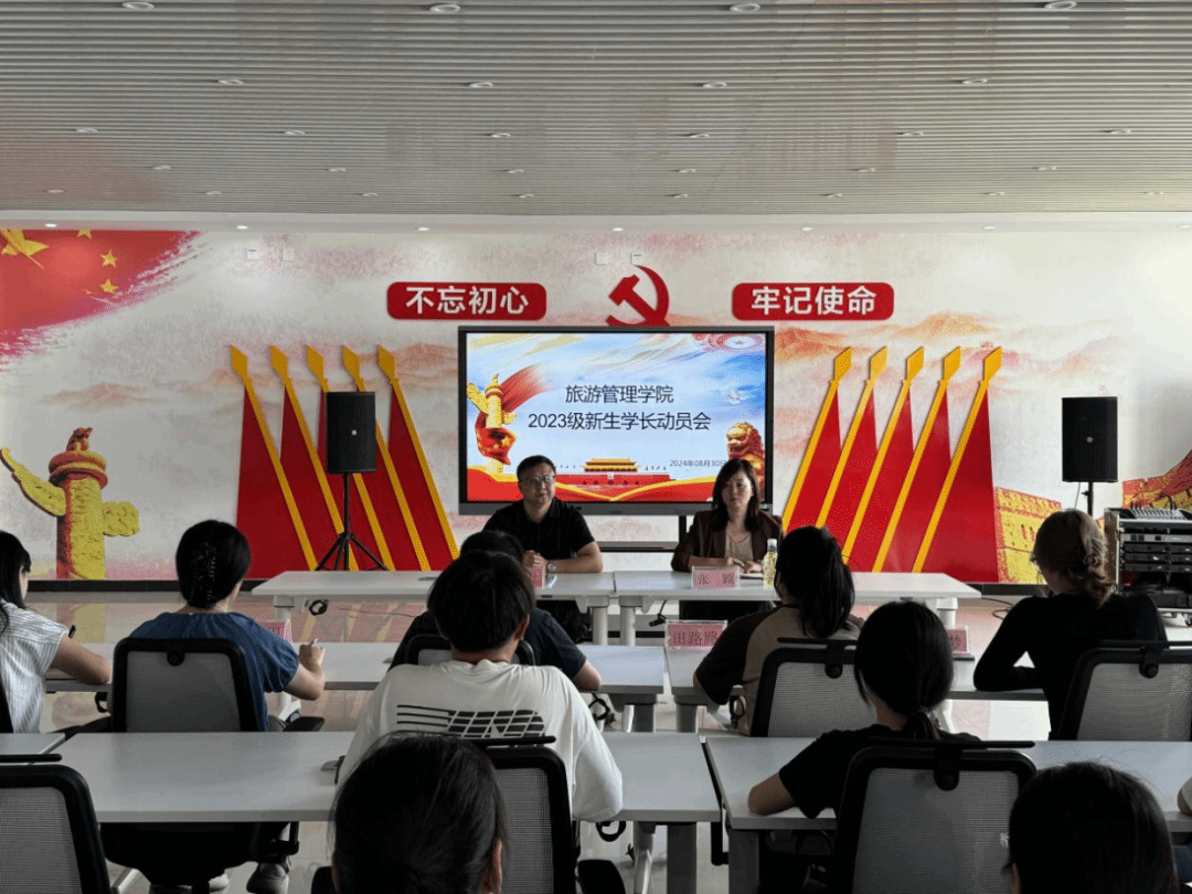 为全面做好2024年迎新生工作,确保新生顺利报到、快速融入校园生活,旅游管理学院于8月30日上午在5A党建馆召开2023级新生学长动员大会。学院党总支副书记张楗让、团总支代书记张颖参加会议,会议由张颖主持,全体2023级团学干部及新生学长参加会议。