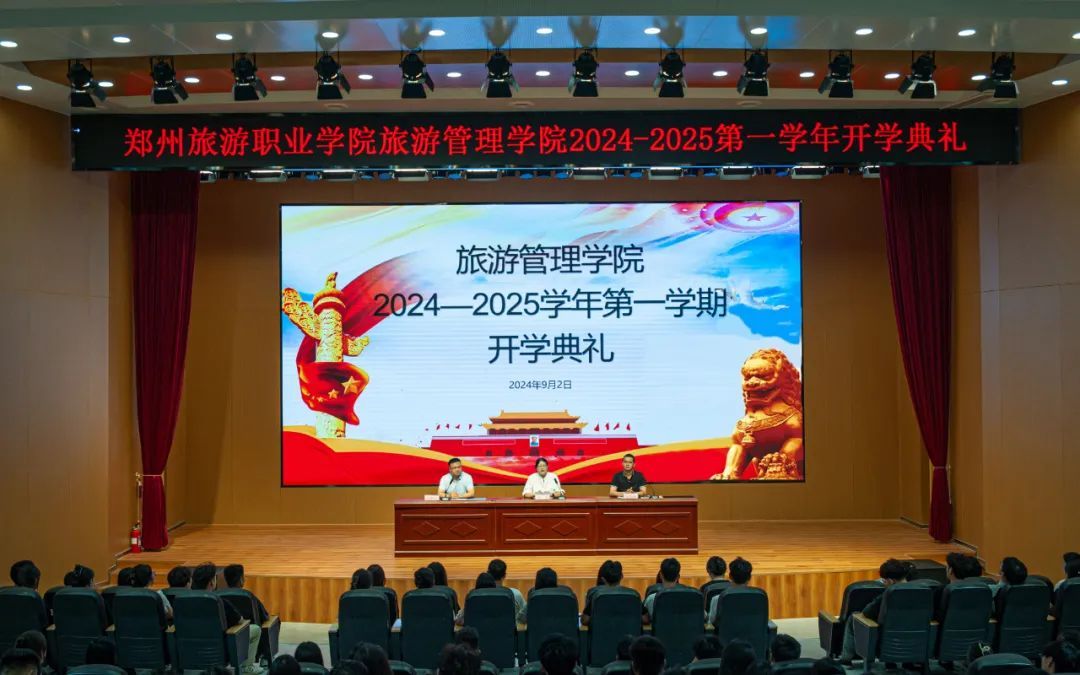 新学期伊始,为帮助学生迅速调整状态,明确目标,引导学生以全新的精神面貌投入新学期学习、生活,9月2日下午,旅游管理学院在2号教学楼1楼礼堂组织召开2024-2025学年第一学期开学典礼,旅游管理学院院长李俊、党总支书记陈海彬、党总支副书记张楗让、全体专兼职辅导员参加典礼,典礼由张楗让主持。