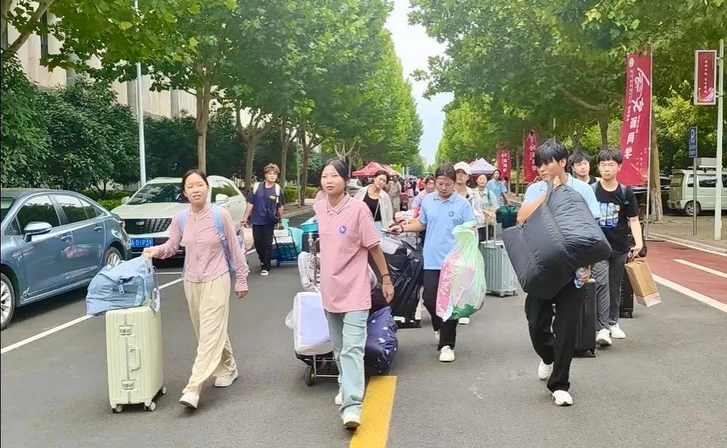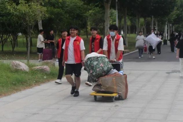 报到结束后,负责引领的志愿者们热情地协助新生们搬运行李,确保他们顺利且安全地抵达宿舍,将这份责任与关爱传递给每一位新生。