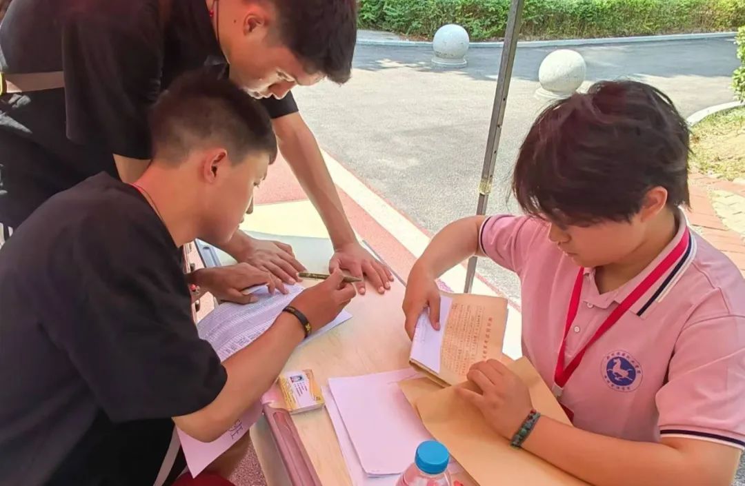 在报到现场,教师们与热心的带班学长们携手合作,细心引导新生们办理各项报到事宜,包括领取宿舍钥匙和校园卡,同时耐心解答他们提出的种种疑问,确保每一位新生都能顺利地完成入学流程,正式成为学院的一份子。