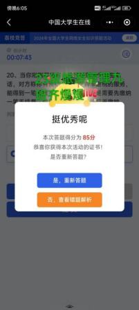 学院利用9月5日、9月6日2024级新生报到期间,现场为新生发放网络安全宣传资料。活动期间在5号楼西门Led屏幕上进行电子标语滚动播放,在5号楼南门大屏幕进行视频宣传。各班开展了主题班会,对网络安全防范方法进行了讨论学习。组织师生参加了以“千万师生同上一堂网络安全教育课”为主题的公开课,提升了对网络安全的重要性认识。举办了“守护青春 网络有你”全国大学生网络安全知识答题活动,截至目前共有1852人完成答题。征集了“2024网络安全百校行”网络安全微视频15个。学院还通过班级群,为学生发送了网络安全学习材料,方便学生随时随地开展自学。