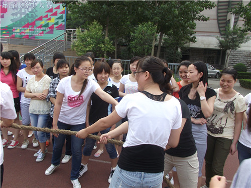 5月30日下午,10酒管7班的全体同学在操场集合,陈海彬老师担任裁判,男女生拔河比赛正式开始。随着陈老师一声令下,紧张而刺激的比赛开始了,双方亲友团声声呐喊也随之而来,双方参赛人员更是使出全身之力,个个满脸通红,寸土不让,力争拔赢对方。旁边观看的观众也是个个热血沸腾,拳头紧握,狠不得自己上去一下子就把对方拔过来。第一局就有结果,帼国不让须眉,以15名美女的团结合力胜出。男同学个个不服,要求换场地进行第二场比试,谁知女生越战越勇,第二局一开始就不给男生一点机会,自己喊着“一二拉”的口号,劲往一处使,一下子就把男生拉过来了。最终女生取得了最终的胜利。