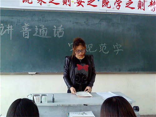 为培养本班同学讲普通话的意识,加强大学生写作的规范化,4月16日下午4点,酒店管理系11级休闲一班在本班教室开展“讲普通话,写规范字”的主题班会活动。班主任张利老师到场参加本次活动,本班48名同学全部到场。