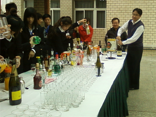 十余种鸡尾酒的文化饕餮盛宴,27日下午我院小木阁成为我院焦点所向,院党委副书记、院长陈锡畴,党政办公室主任张元奎,学生党支部书记毛艺林及我院各系众多师生亲临现场。本次酒会在我系主任李晓东,书记李玫,副书记郭防,团总书记陈海彬,调酒专业教师姚志刚等老师的组织引导下,在姚老师的主持下,和蔼可亲的陈院长与7名学生为本次酒会举杯剪彩并作出精彩致辞,他鼓励我系师生在专业技能知识方面能够更进一步发展应用,梦幻鸡尾酒会浓情上演。