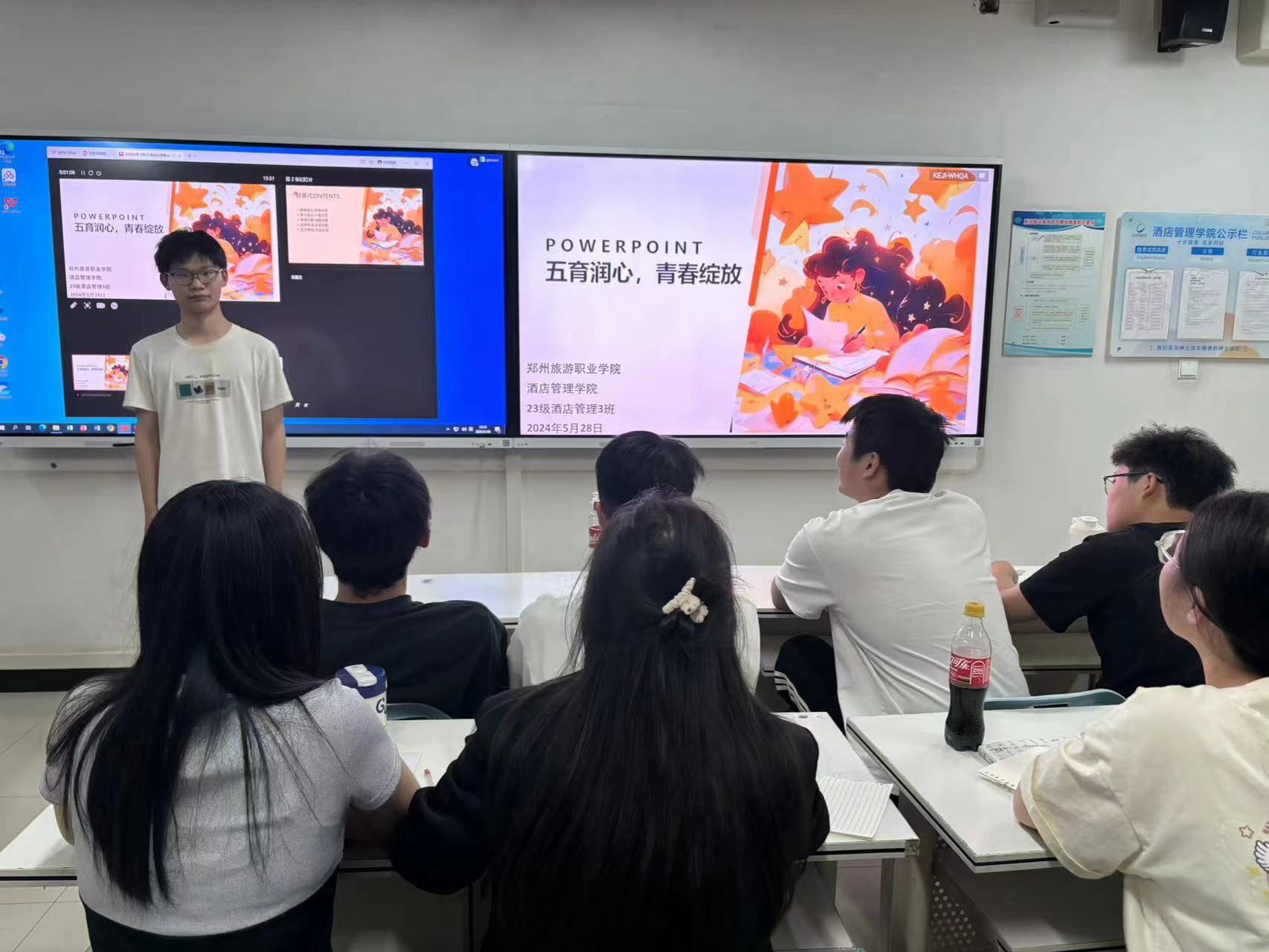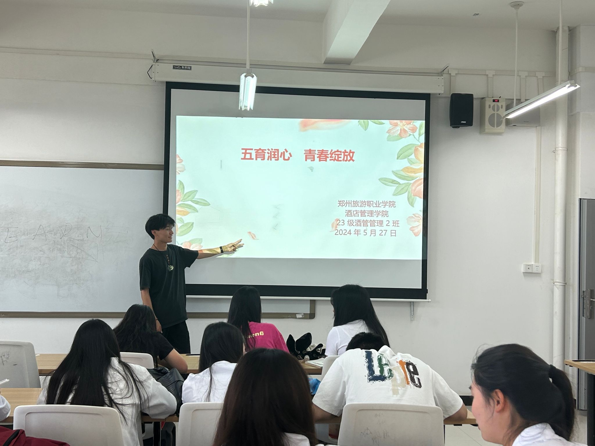 为深入贯彻落实党的教育方针,让学生在德智体美劳五育全面发展中成长成才。酒店管理学院于本周组织各班召开“五育润心,青春绽放”主题班会。