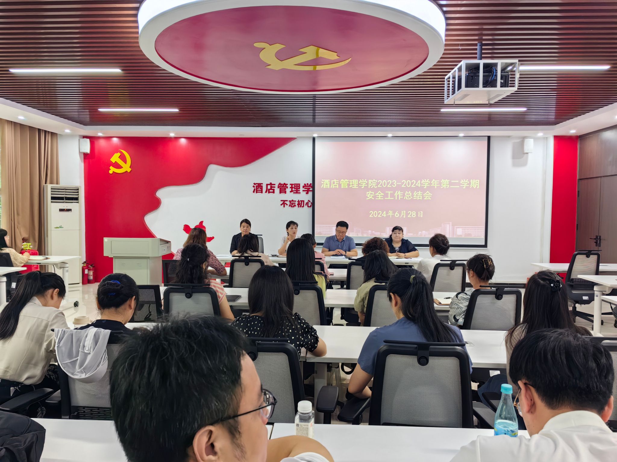 为了扎实开展酒店管理学院安全管理工作,提高全体师生的安全意识,防范安全事故的发生,确保学院的安全稳定,酒店管理学院于6月28日上午召开2023-2024学年第二学期安全工作总结会。酒店管理学院院长肖靖、党总支书记郭防、副院长钱丽娟、副院长周崴出席会议,全体教师参会。