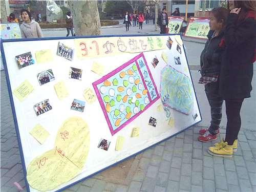 三七女生节,种下小小的愿望,收获大大的梦想。2012年3月7日,旅游外语系在教学楼前举行“玫瑰绽放女生节”展板宣传活动。本次活动主要面向旅游外语系各位女生展开,活动展板由各班女生的照片和心愿卡片组成。