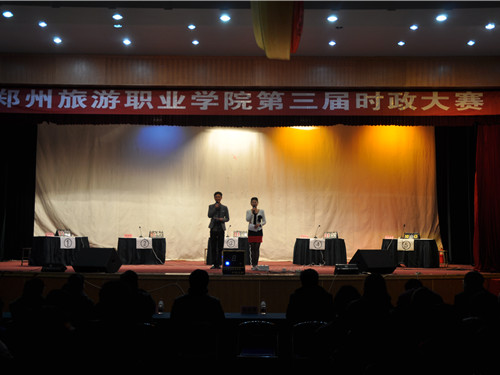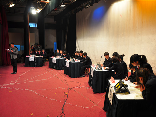 大赛开始之初,主持人依次介绍各系代表队,旅游外语系的参赛选手有秦亚东、宋淑妹、武志政、张丹。经过各系一番简短的自我介绍后,比赛正式开始。首先进行第一环节:个人必答题。在这一环节中外语系各位参赛选手都表现优秀,得分成绩领先。第二环节:集体必答题。选手们之间配和默契,精彩连连不断。接下来是本次大赛最精彩的环节:抢答题。外语系参赛选手积极抢答,掀起了本次时政大赛的高潮,赢得了场下阵阵热烈掌声。不知不觉已到了大赛最后一个环节:风险题。由于分数暂时落后,为了迎头赶上,在这一环节中,外语系选手选择了40分值的风险题,再一次展示了外语系代表队的风采和魄力,现场气氛持续高涨。