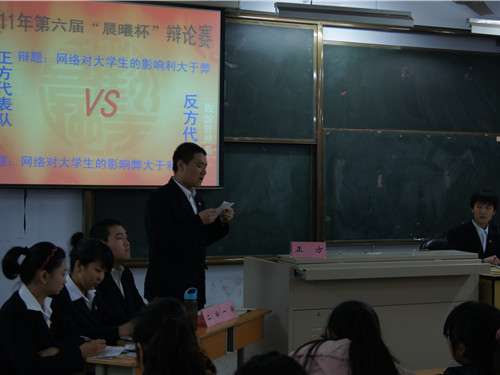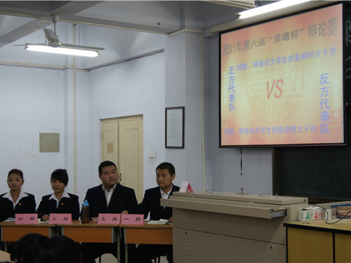 本次比赛的正反双方分别是旅游外语系和旅游管理系,正方辩题是“网络对大学生的影响利大于弊”,反方辩题是“网络对大学生的影响弊大于利”。
