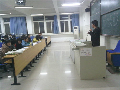 2011年11月17日晚7点半,日语社于外语系二楼多媒体教室开展了日语社社团活动。由社长岳少洋领读生词并复习上节课内容。随后社长又教授大家一些日常会话用语和语法要点等。同学们都聚精会神地听讲并认真跟读,力求发音标准、清晰。课堂中,社长激情澎湃的讲解每一个读音,又重点教授大家初次见面的礼貌用语,让同学们能学以致用。同学们都认真听讲并且用心做笔记。