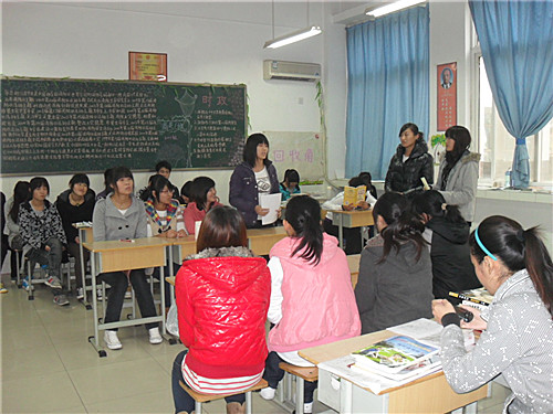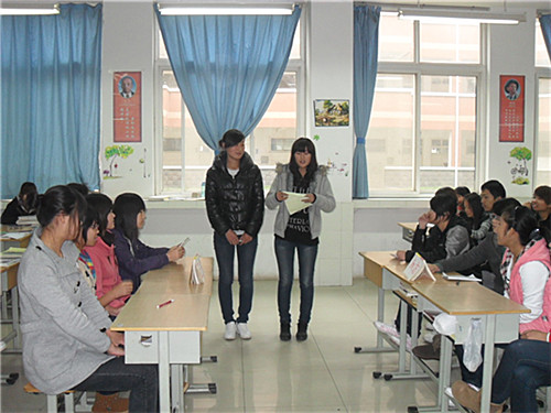 2011年11月2日下午3时,旅游外语系商务英语一班成功开展辩论赛。辩论赛由班长主持,主题为:“大学生在校期间做兼职的利与弊”。
