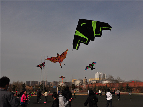 春暖花开的三月,万物披上绿装。为了丰富同学们的课余生活,我院团委组织了这场风筝放飞活动。伴随着阵阵春风,象征外语系的“沙燕”风筝迎风而起。燕子代表活泼轻盈,代表着外语系飞向天空,众多风筝中,外语系燕子风筝飞得最高,眼看风筝就要夺得冠军时,风筝线却和其他班的风筝线挤到了一起,在风筝即将落地时,同学使劲拉风筝线,但线还是越来愈乱.....最后,外语系风筝仍没能夺得冠军。虽然有点可惜,但我们在放飞风筝中得到了快乐。