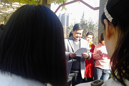 活动开始,同学们在负责人的组织下有序地在长廊内排好了队。以李胜江老师为代表的教师们为同学们分发了英语文章,李老师把同学们分成几个组,教同学们练习发音,并纠正了同学们发音上的错误。还为同学们讲解了文章中较难理解的内容,让同学们充分了解了西方文化。同学们积极地练习发音并认真听老师讲解,现场气氛甚是活跃。